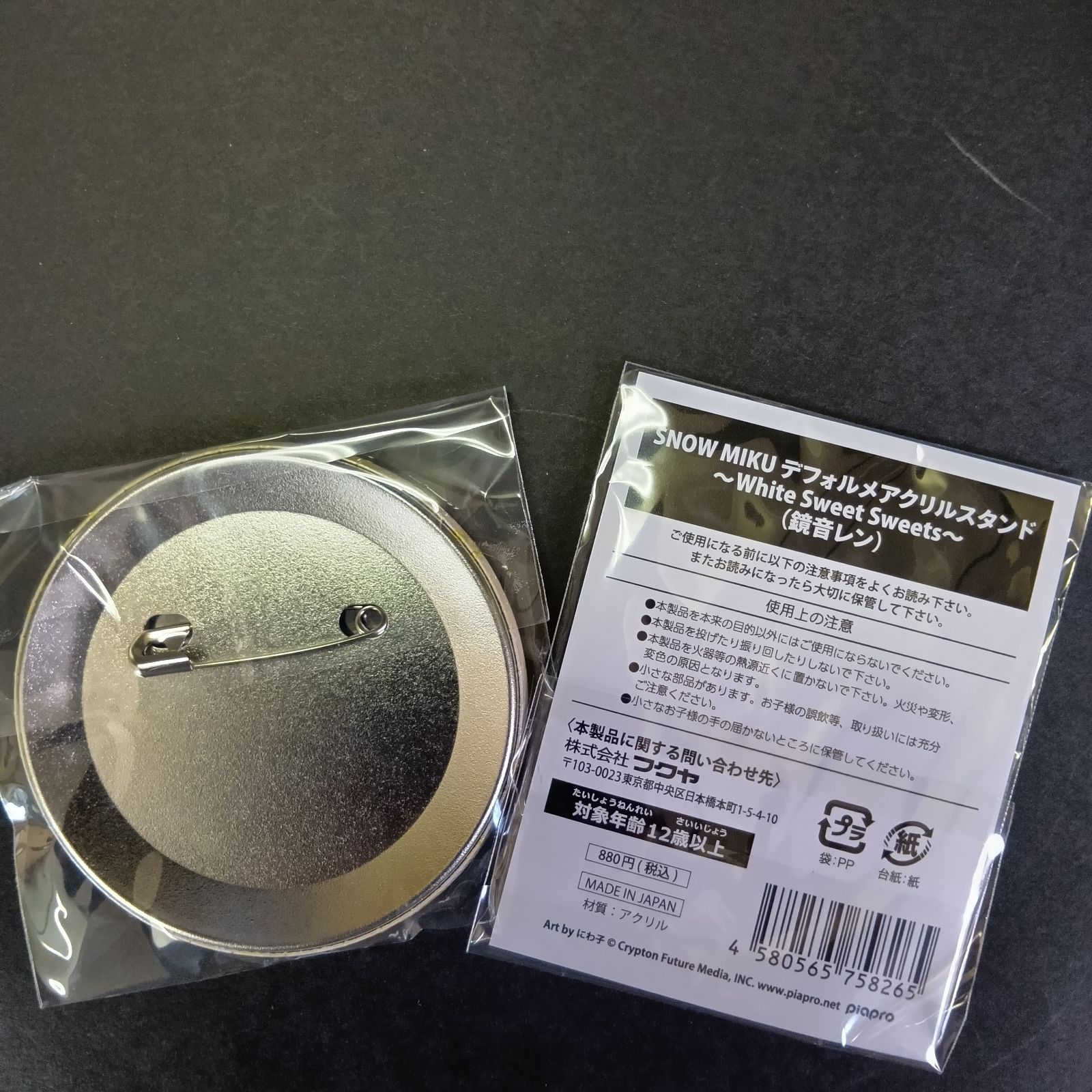 アクリルスタンドと缶バッチのセットです