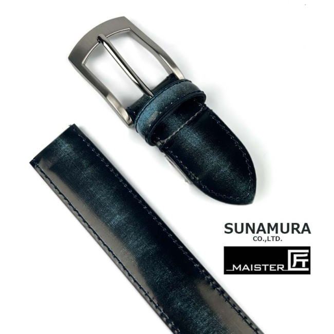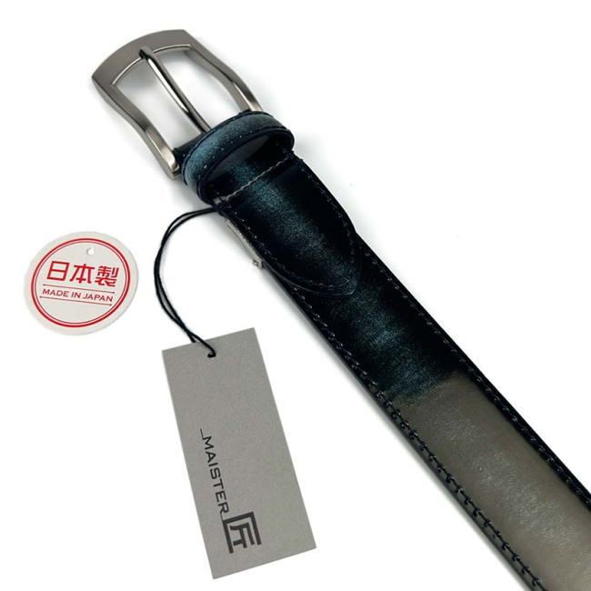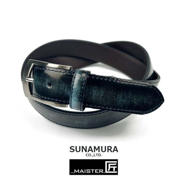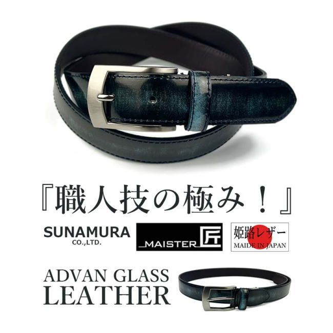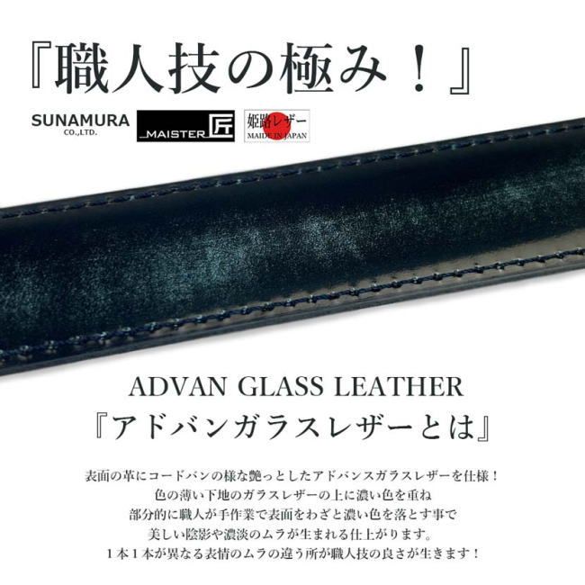 両面本革使用のアドバンガラス加工レザーのシンプルベルト!