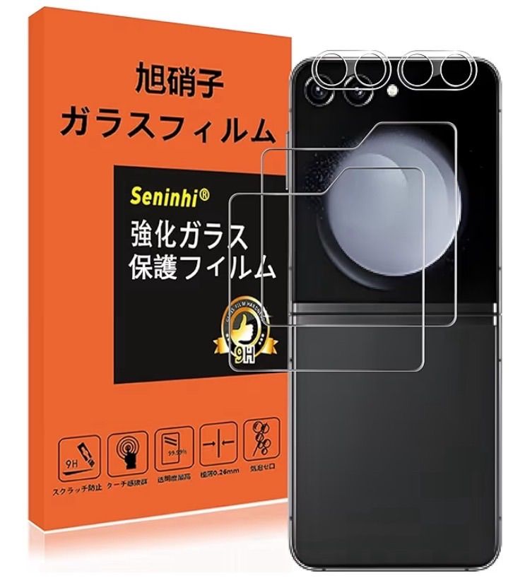 対応 Galaxy Z flip 6 ガラスフィルム レンズ保護フィルム 指紋防止 Galaxy Z flip6 強化ガラス 硬度9H 国産旭硝子AGC素材 気泡ゼロ 飛散防止 高感度 衝撃吸収 ラウンドエッジ加工 【2枚液晶保護フィルム+2枚レンズ保護フィルム】
