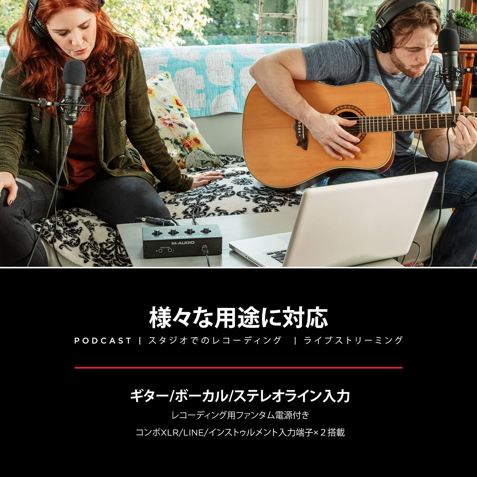 スタジオでのレコーディング、Podcast、ライブストリーミングがより簡単に M-Track Duoはクラス水準のレコーディングを可能にするポータブル・オーディオインターフェースです。Mac/PCでの音楽制作も簡単で、オーディオレゾリューション48 kHzでの高解像度レコーディングを実現します。