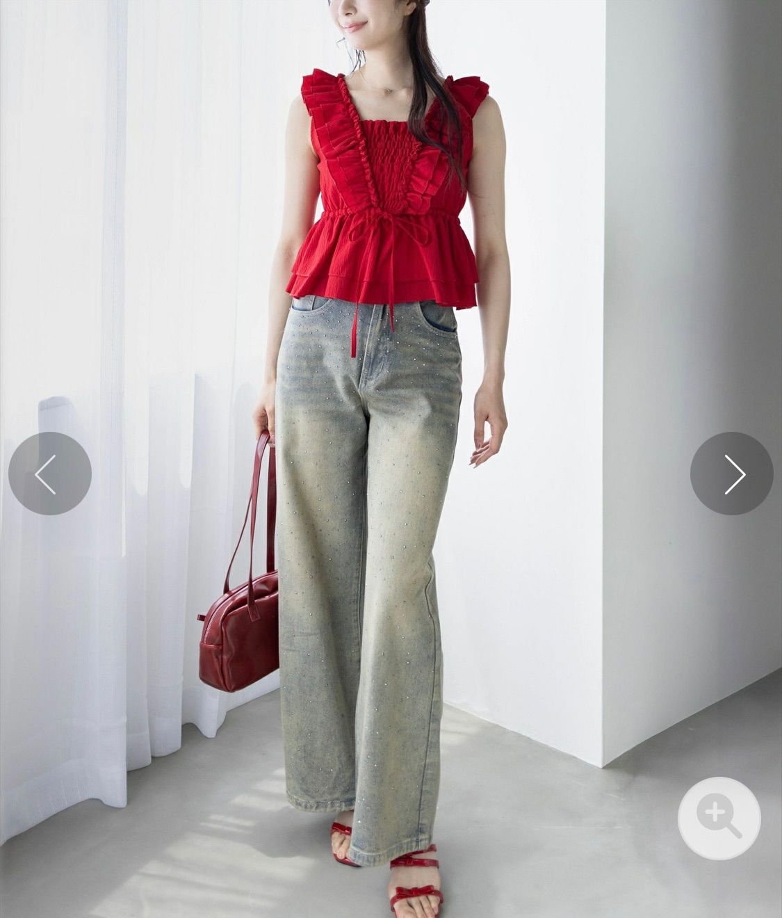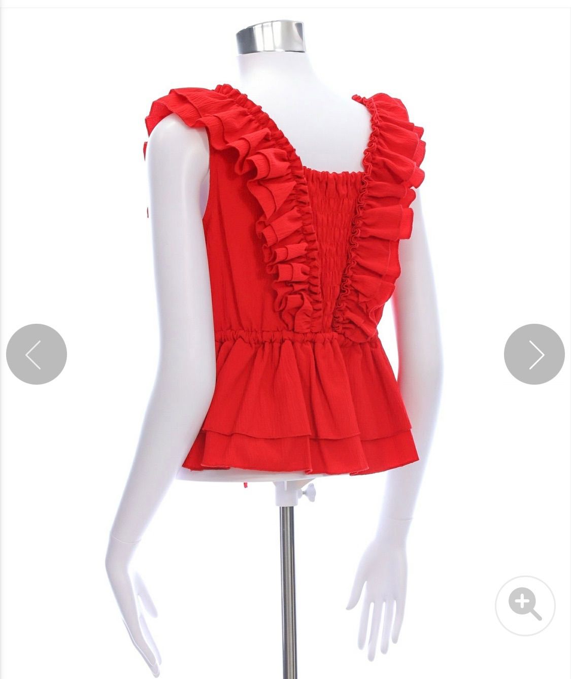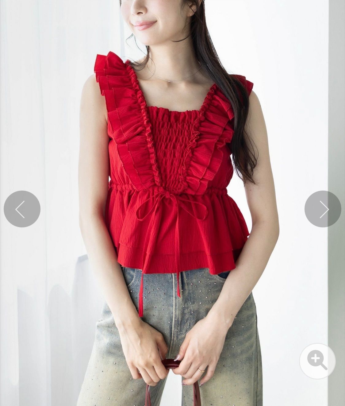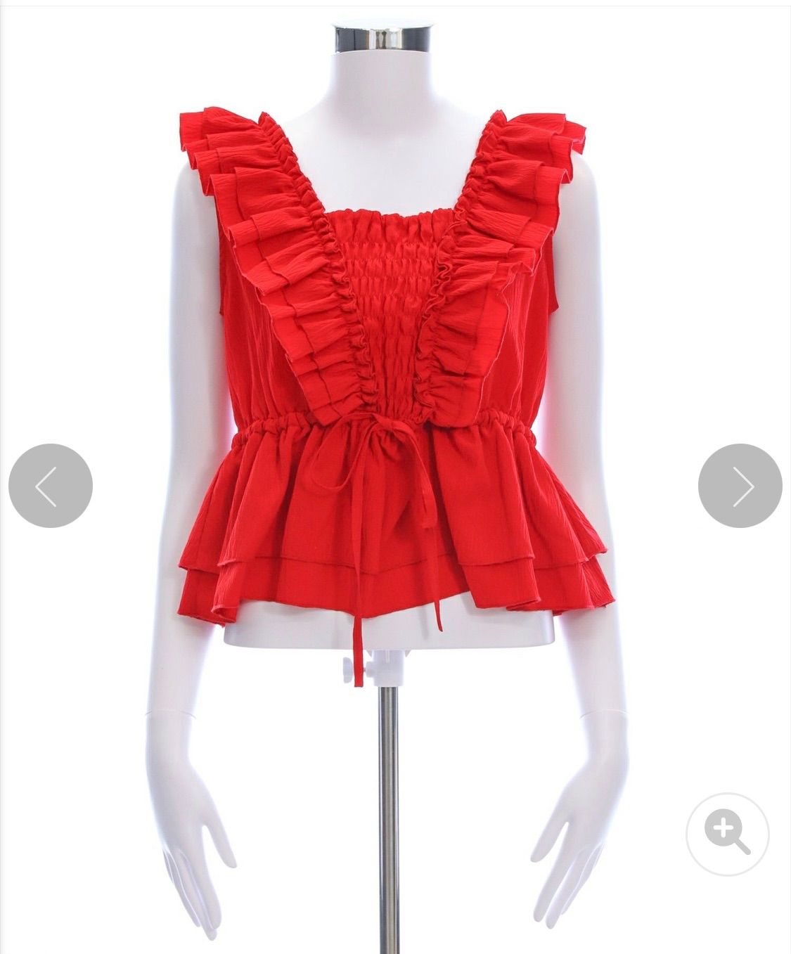 【新品 タグ付き】clear フリルデザインペプラムブラウス レッド