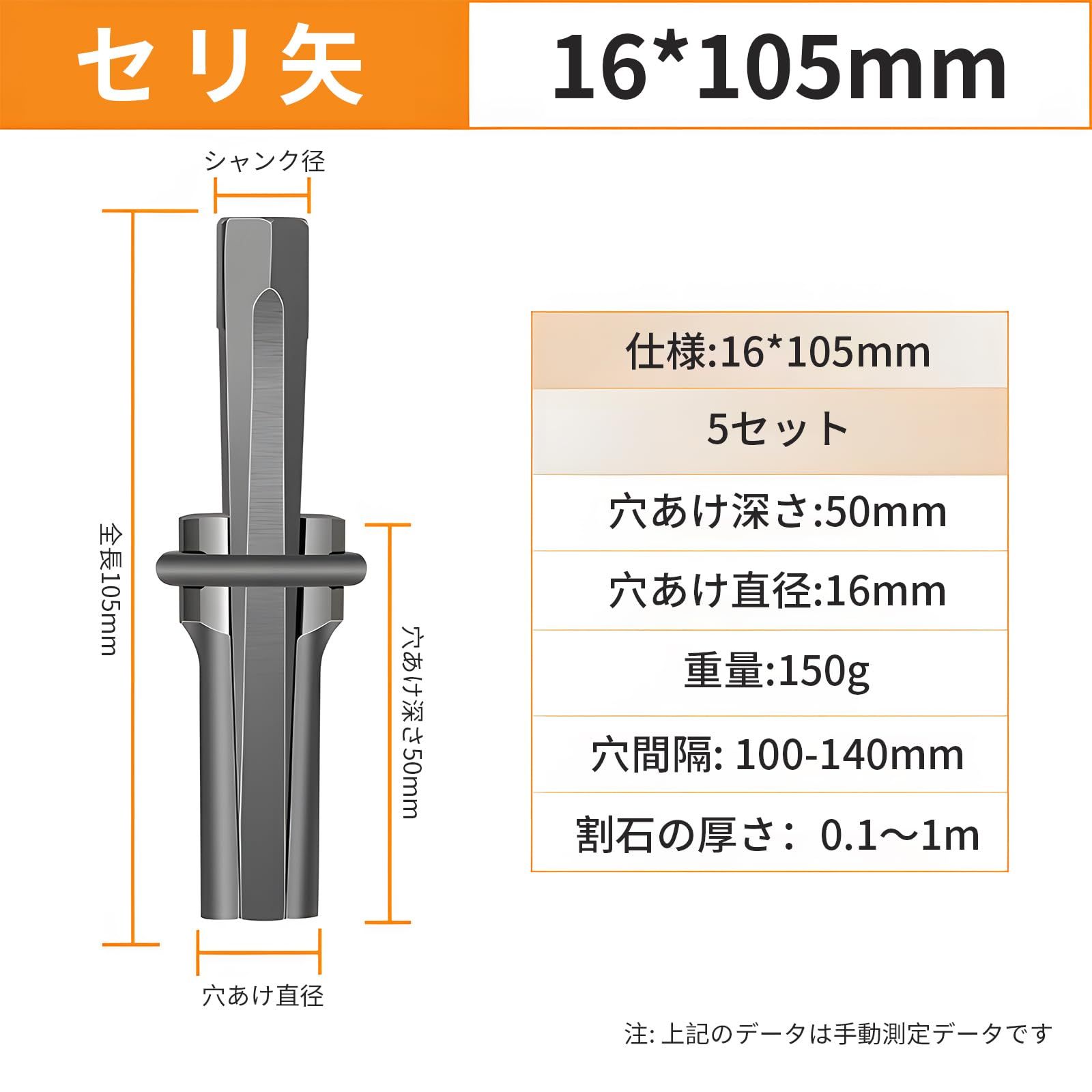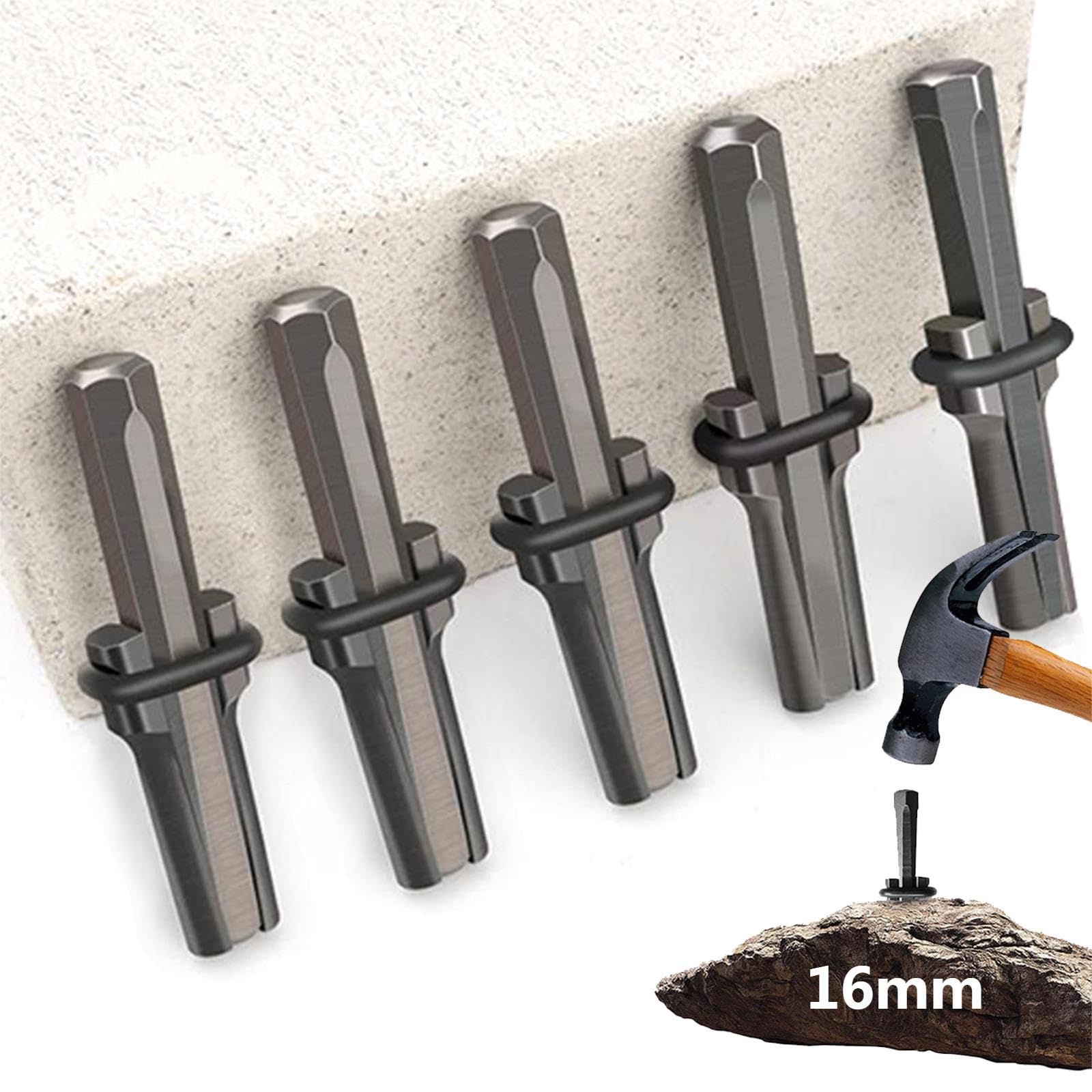 ストーンスプリッターくさび 5セット セリ矢 16mm ストーンオープナー 再利用可能 高い硬度 石を素早く分割 ウェッジフェザーシム シールリング付き 岩石分割機 硬い石、岩、花崗岩、コンクリートの割裂に適 ひび割れた石器 (16mm)
