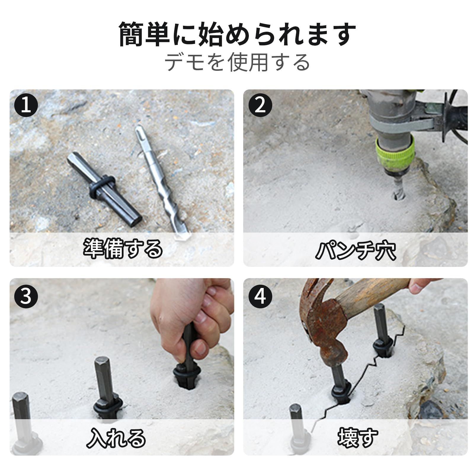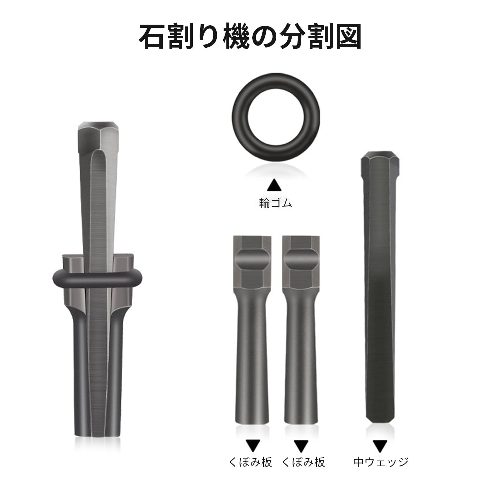 【用途】石割りウェッジ、石、コンクリートブロック、大理石、花崗岩、その他の硬い岩石の加工や分割に使用できます。直径18mm、深さ40mmの穴で使用する必要があります。