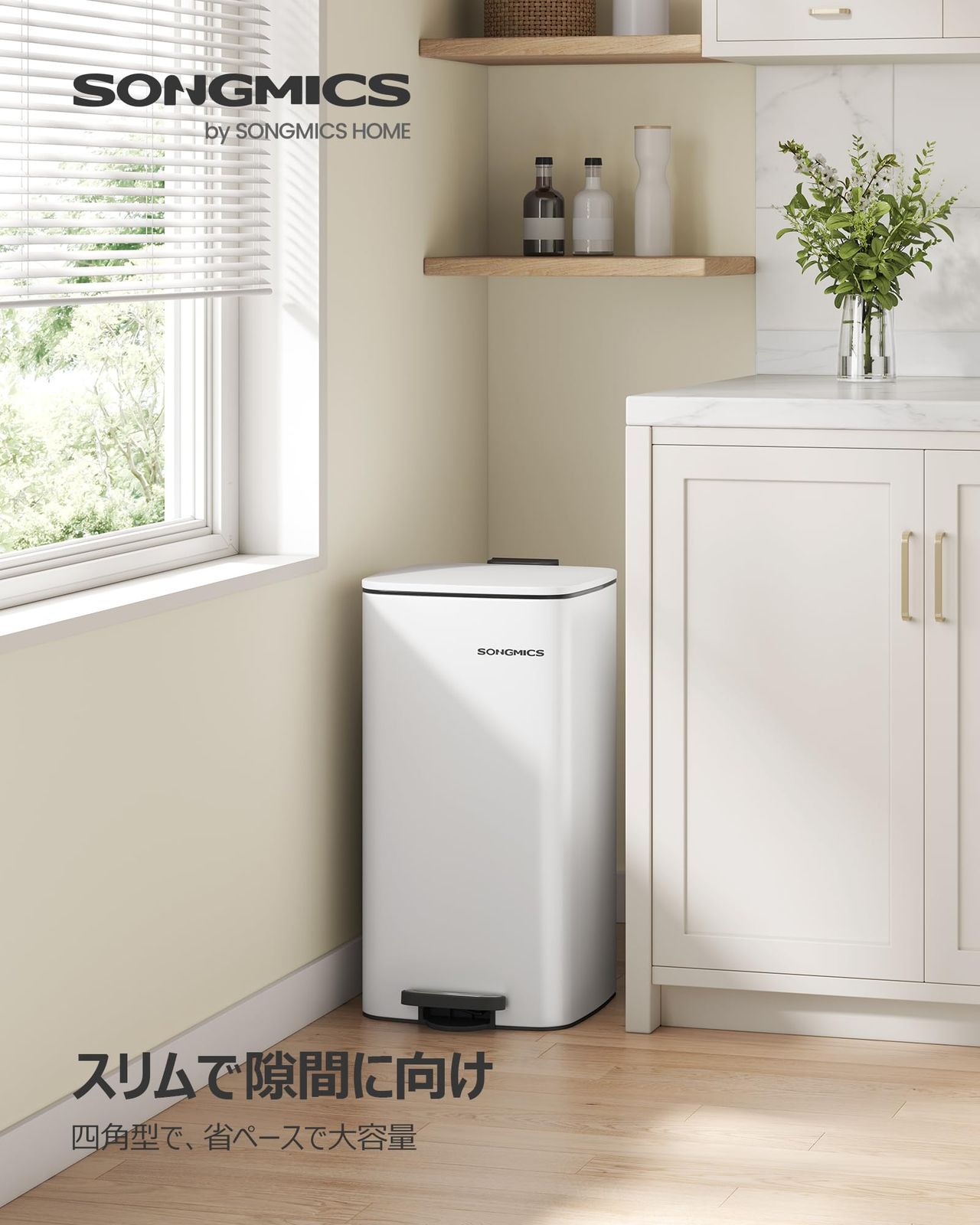 ゴミ箱 スリム 30L ペダル式 蓋付き ステンレス製ダストボックス キッチン、リビング、洗面所隙間用 大容量 音が静か 袋が見えない 省ペース 防水 内バケツ有り おしゃれ ホワイト LTB593W02