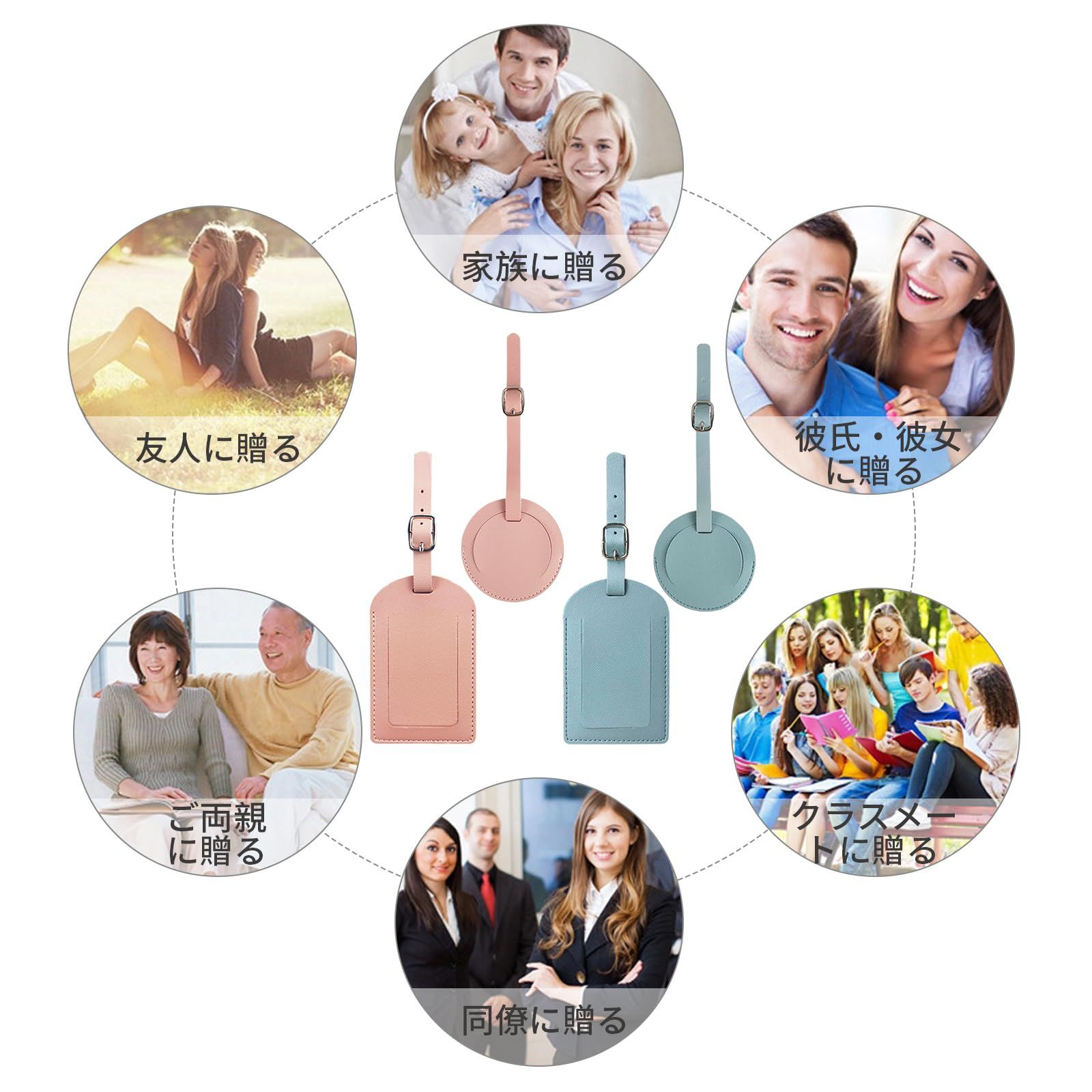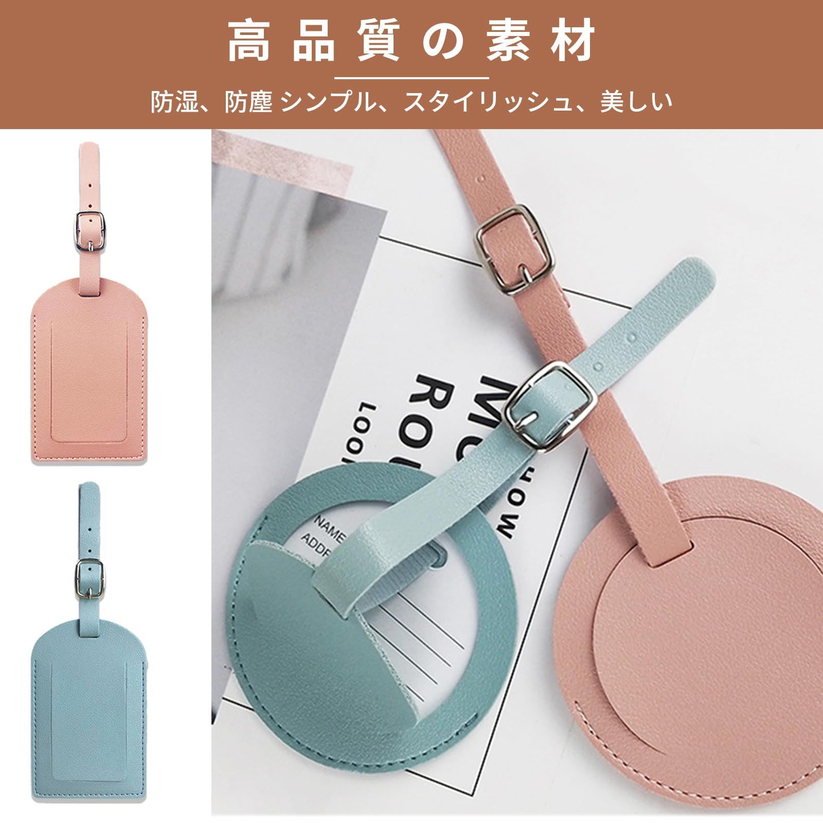 荷物タグ 4個セット バッグ用ネームタグ ネームタグPUレザー 防水 耐久性 超軽量紛失 防止ダメージ耐性 IDカードスタッフ 出張用、スーツケース、バッグ、名刺入れ 旅行 軽量 (ピンク+ライトブルー)