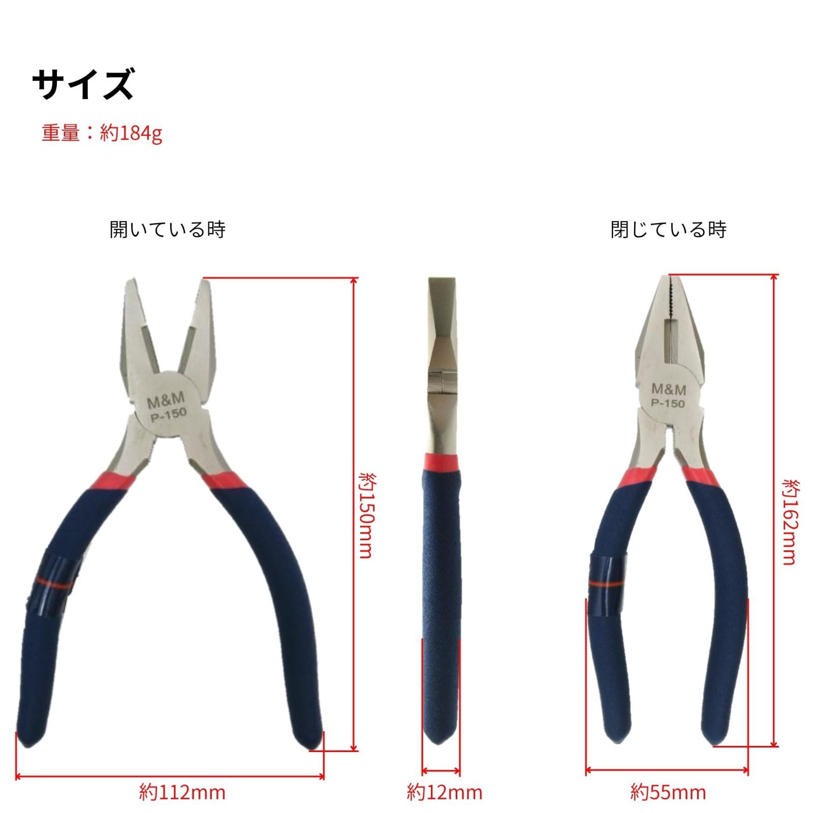 高儀(Takagi) M&M ペンチ 150mm 【すべりにくいグリップ付き】【切る・つかむ・曲げる】【切断能力φ1.6mm】