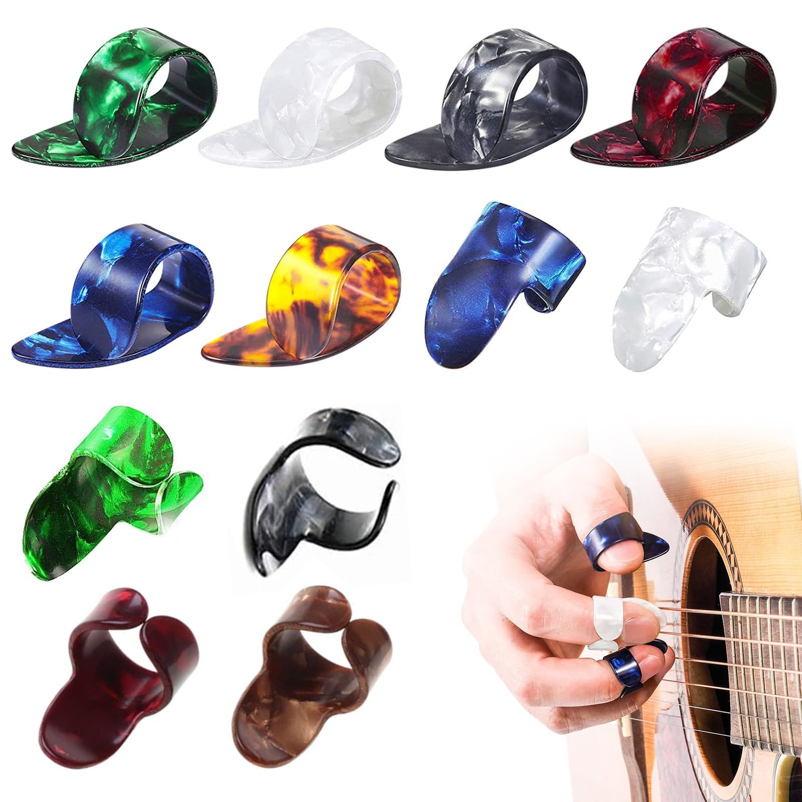 YFFSFDC ギター用サムピック ギターフィンガーピック ミドル フラットサムピックサムピック 人差し指ピック各6個 合計12個入り ギター 指保護用具セット 初心者耐久