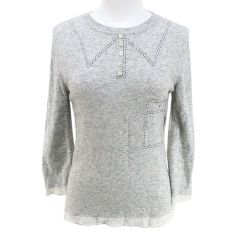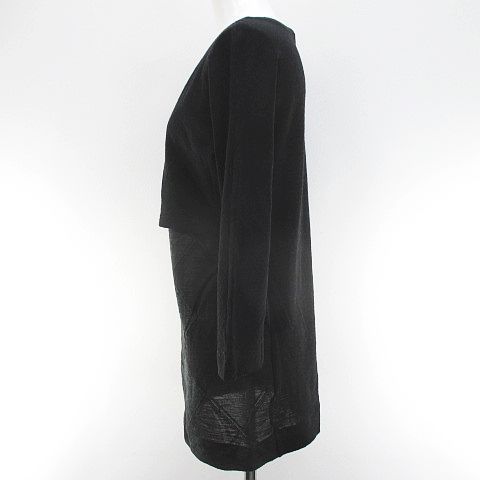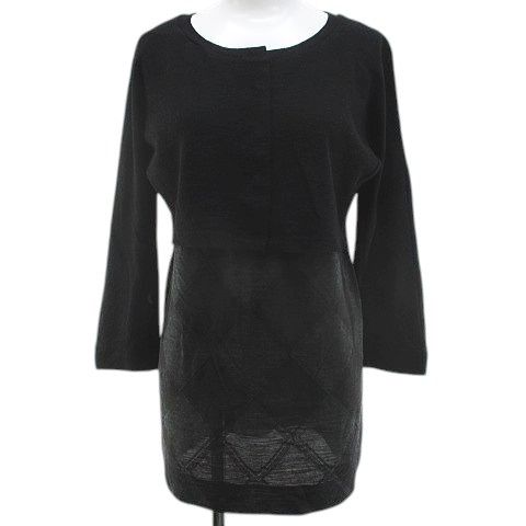 【商品名】アッシュ HACHE 長袖 ニット セーター チュニック レイヤード調 44 灰系 ダークグレー ダイヤ柄 スナップボタン イタリア製