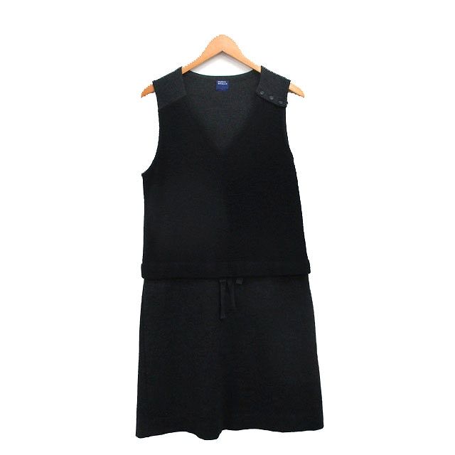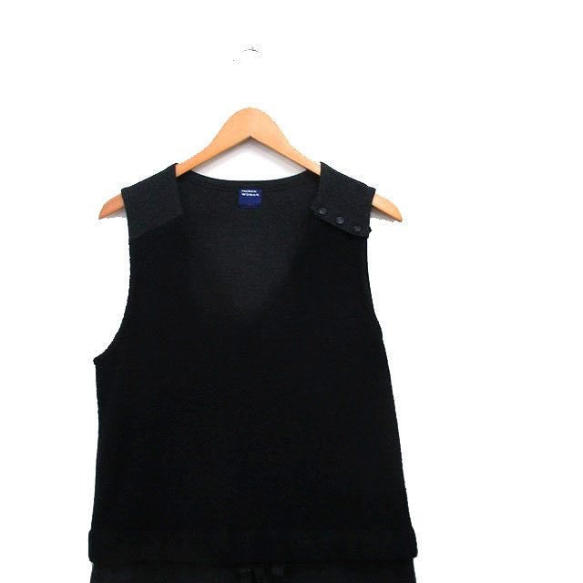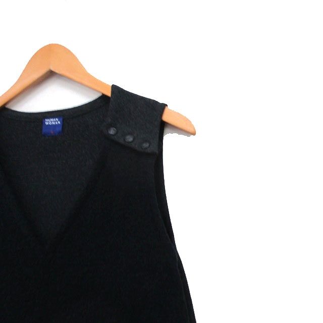 【商品名】ヒューマンウーマン HUMAN WOMAN ワンピース ノースリーブ Vネック ウール シンプル M ブラック 黒 /KT38