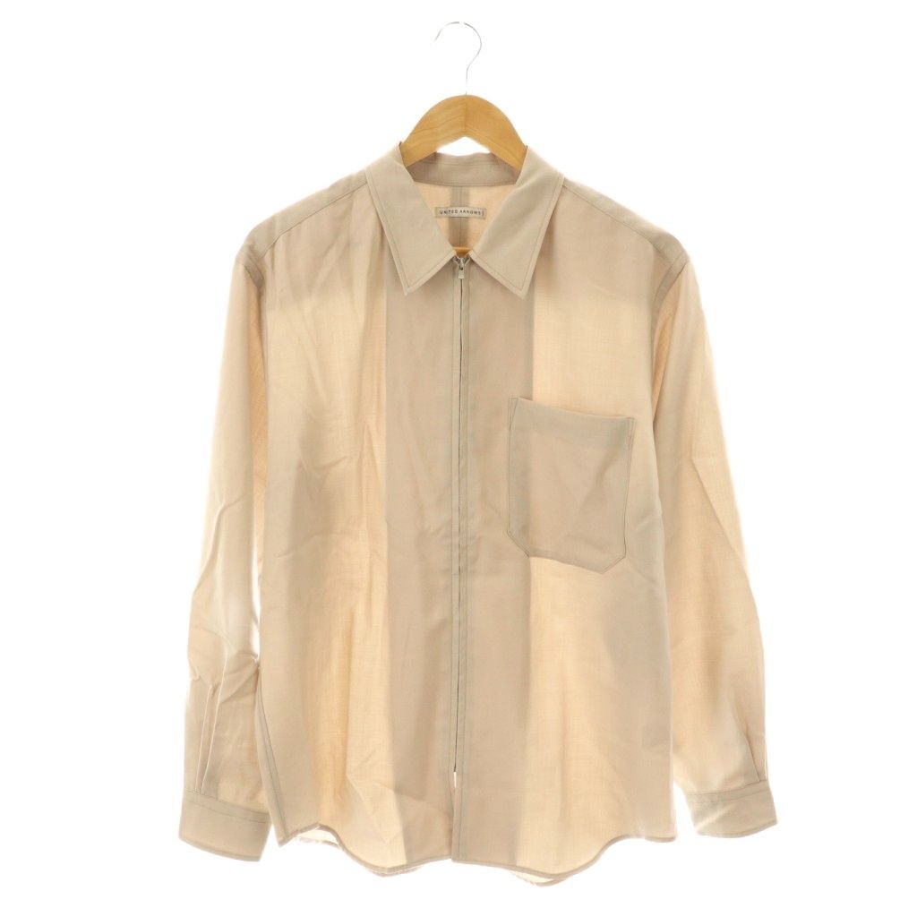 【商品名】ユナイテッドアローズ UNITED ARROWS ウールトロピカル ジップ レギュラーカラーシャツ M ベージュ /ES ■OS