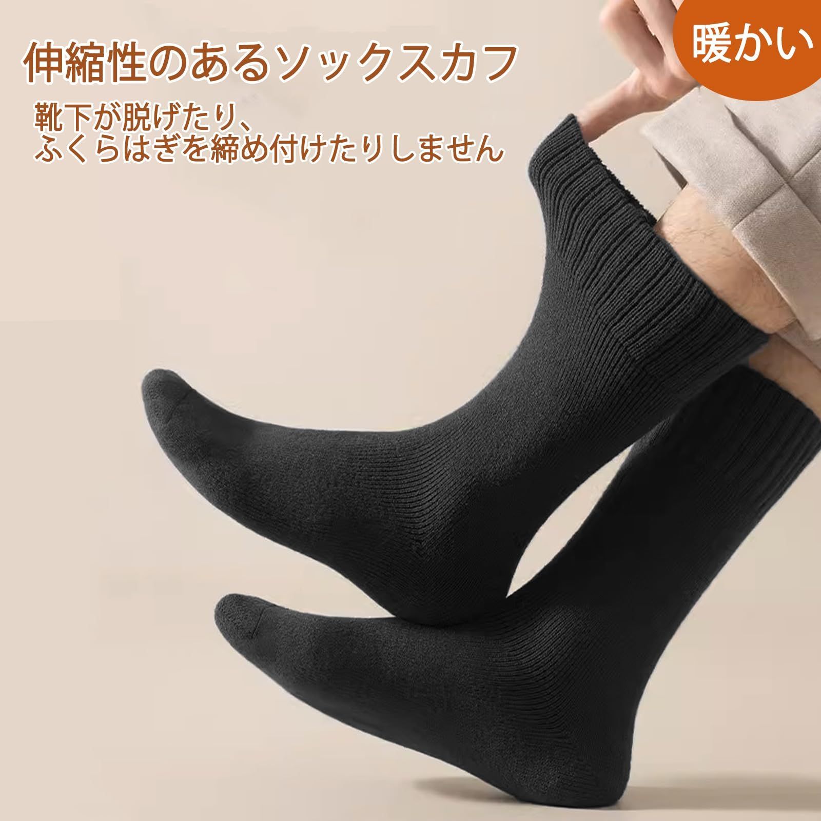 【暖かさを保つ】内側に柔らかいテリーを使用したこの靴下 メンズ 冬、熱を完璧に閉じ込めて足を暖かくドライに保ちます。快適なウールブーツソックスは、足を優しく包み込み、冬の間ずっと暖かく快適に保ちます。
