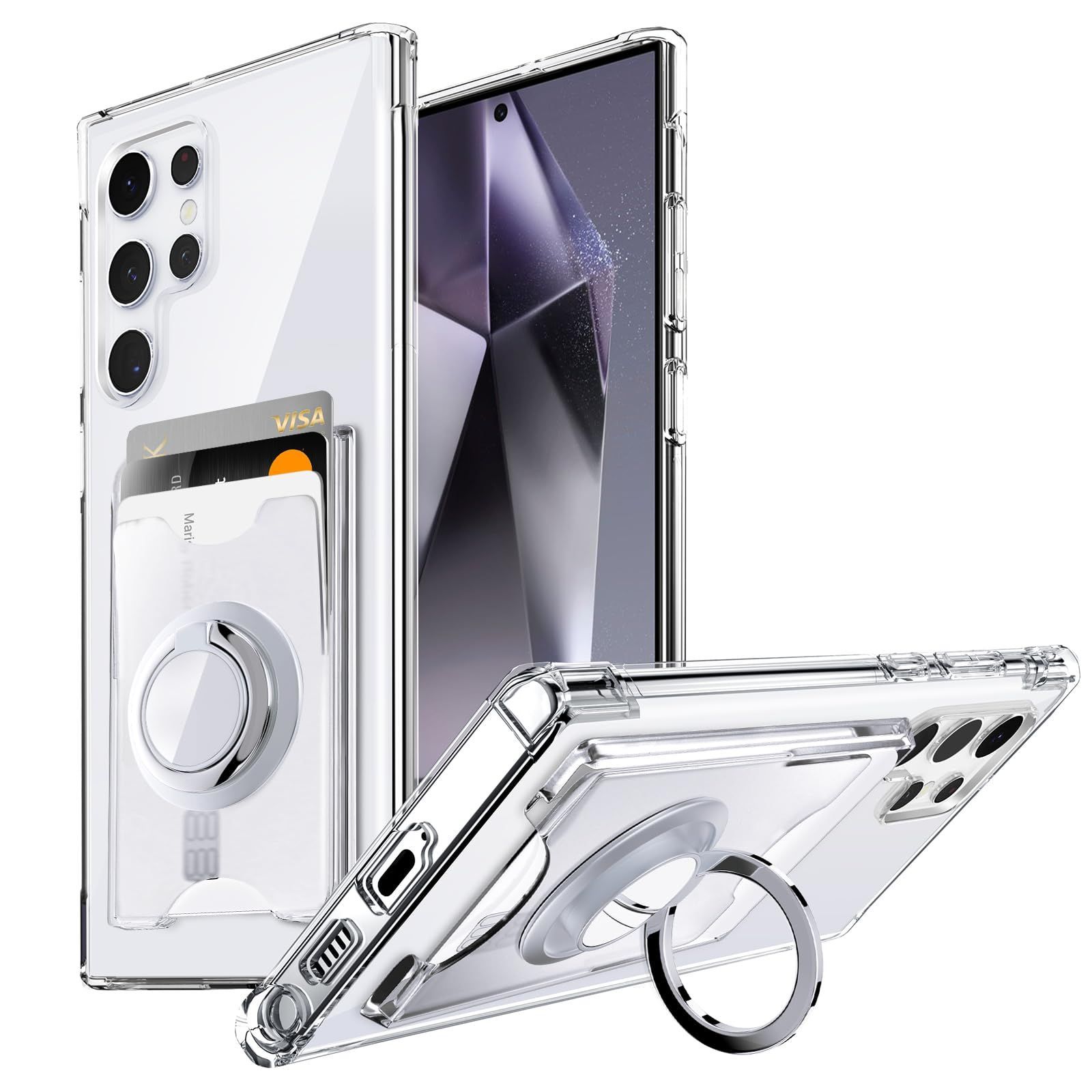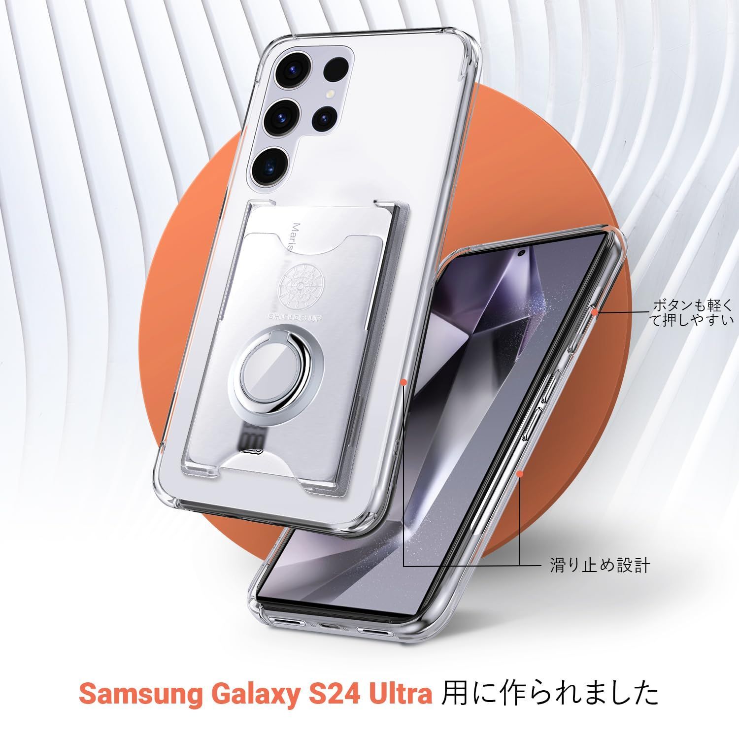 Rockaway Galaxy S24 Ultra ケース SC-52E SCG26 ケース カード収納 背面ポケット リング付き スタンド機能 耐衝撃 透明 TPU スマホケース ギャラクシーS24ウルトラ カバー - クリア