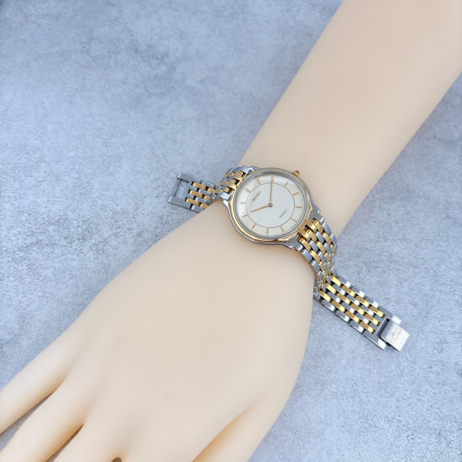 稼働 SEIKO セイコー DOLCE ドルチェ メンズ 腕時計 薄型 ドレス 5E30-6350 ゴールド × シルバー クォーツ 66