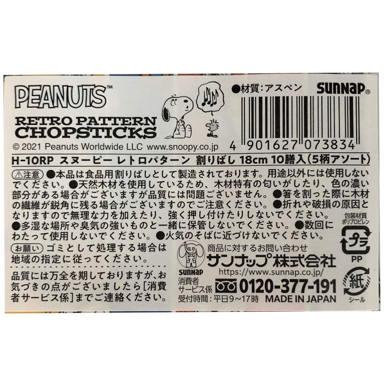 サンナップ 割り箸 スヌーピー レトロパターン 18cm 10膳入 5柄 アソート 日本製