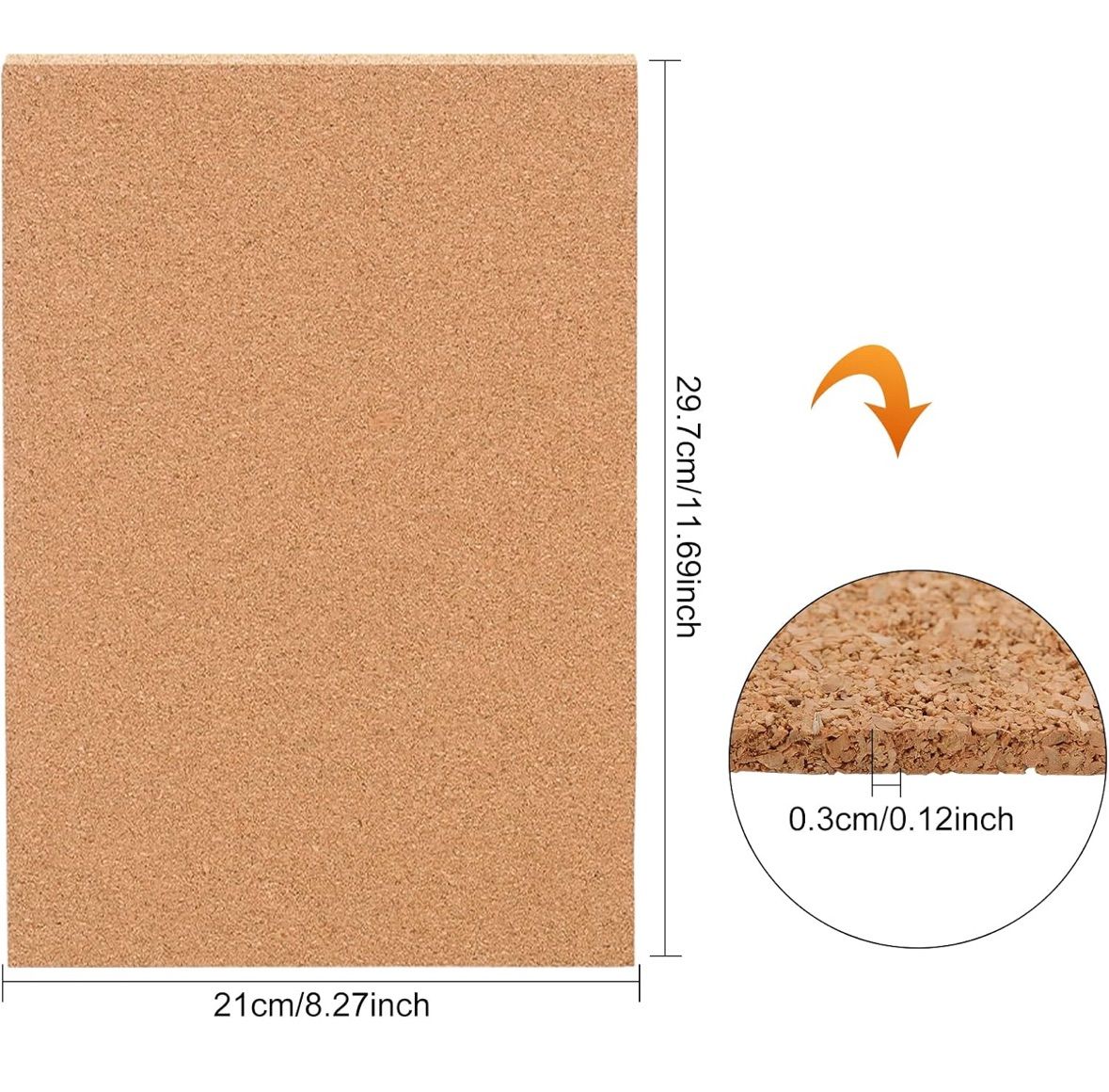 パッケージ包装:10枚セットコルクシート;サイズ:A4サイズ、長さ約29.7cm、幅約21cm、厚さ約0.3cm