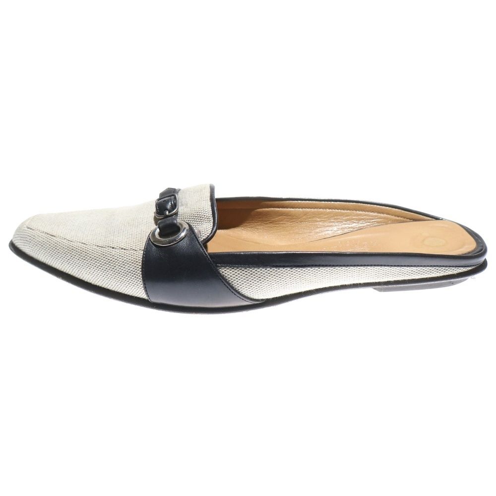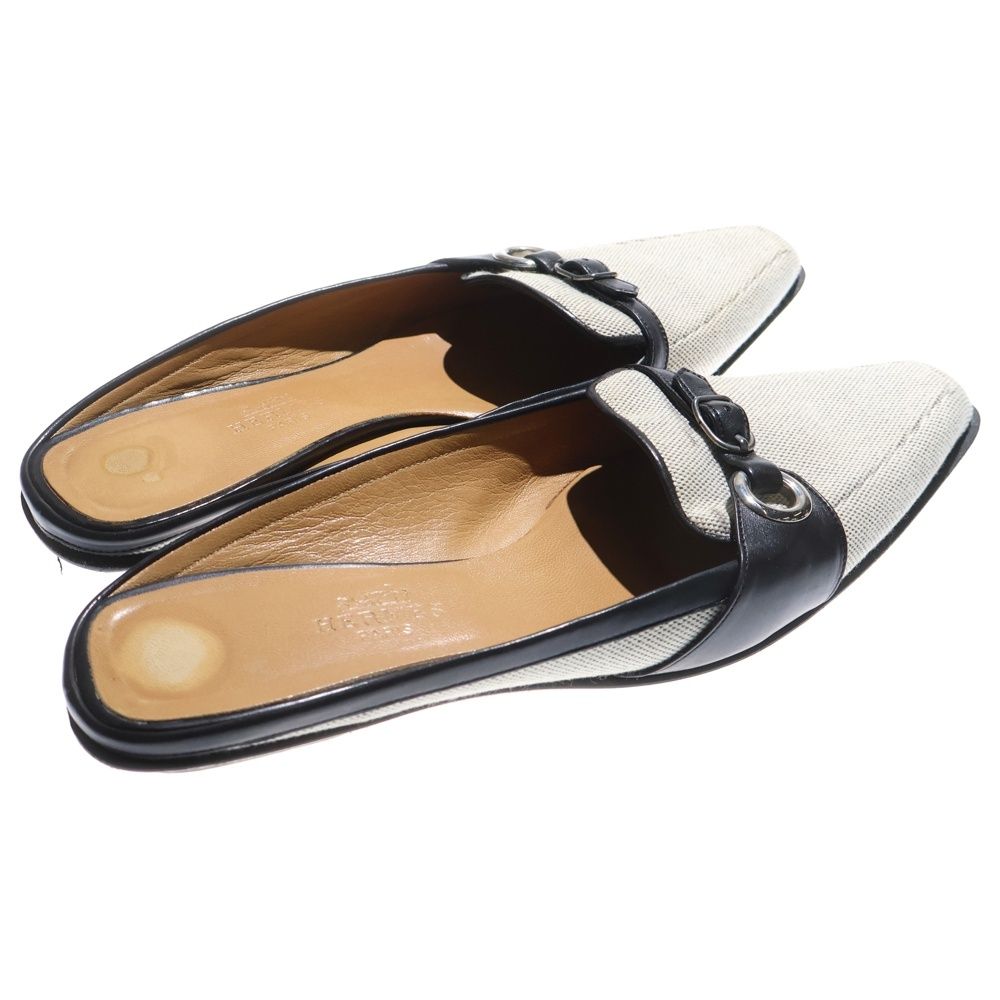 【品名】レザー ベルト アイレット キャンバス フラットシューズ ミュール パンプス シルバー金具 ブラック/ベージュ レディース