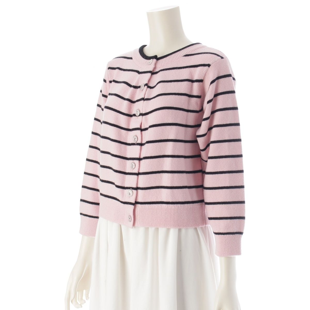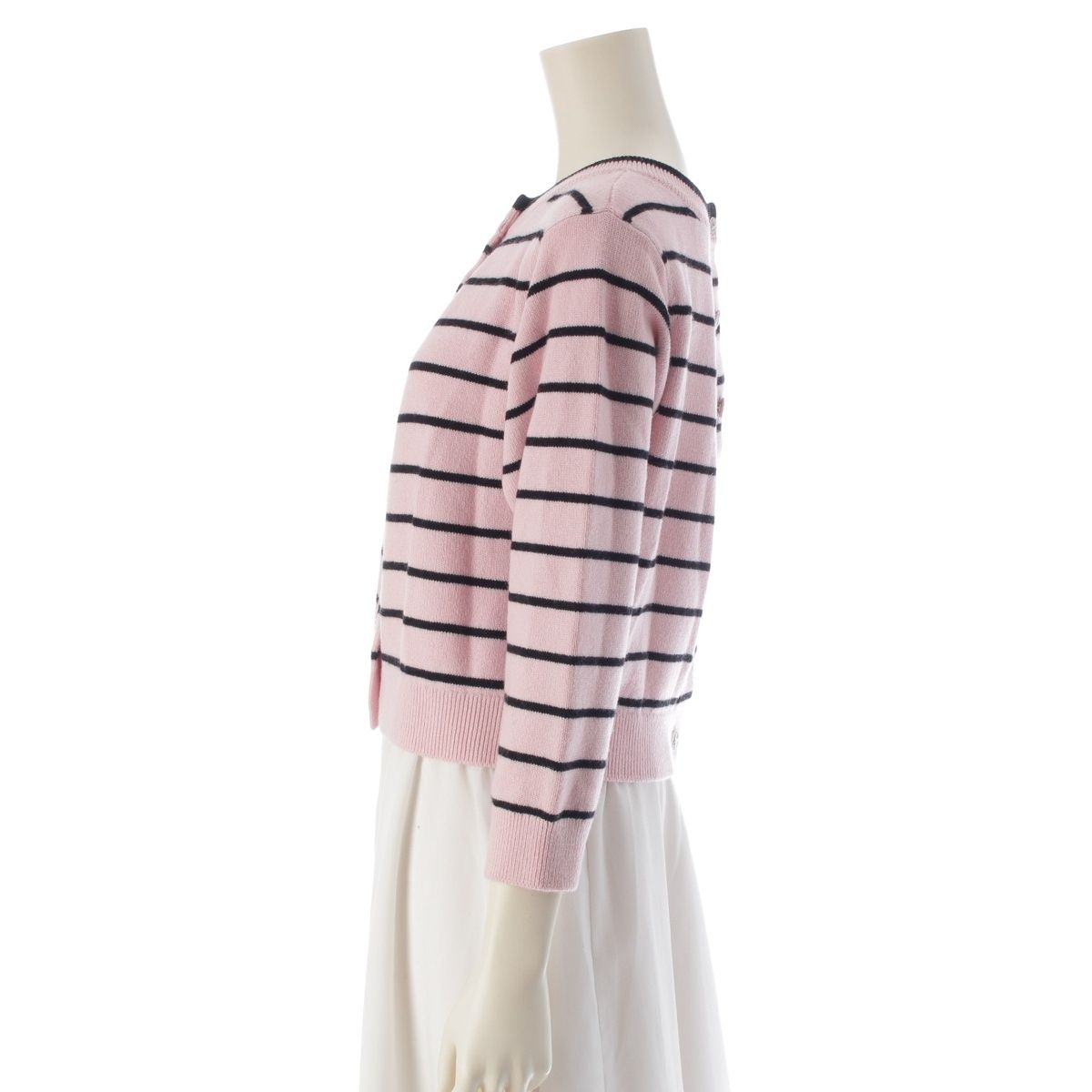 シャネル 2025 ココマーク ボーダー ダブルフェイス カーディガン トップス P79517 ピンク 38【中古】