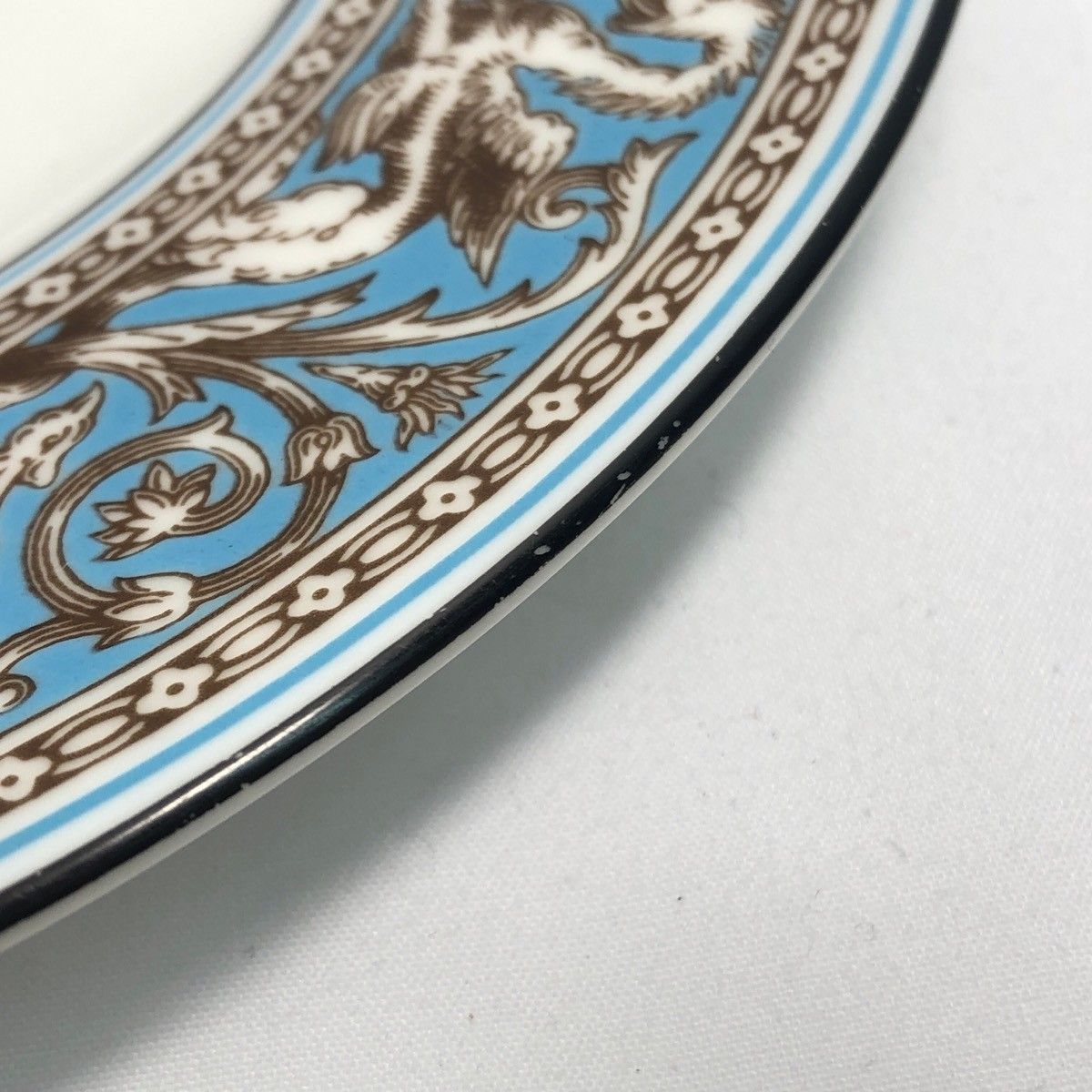 ボーダー状のデザインは16世紀の“グロテスク文様”を基に、ギリシャ神話の「グリフィン」をモチーフとしており、鮮やかなターコイズとの組合せが非常に印象的です。