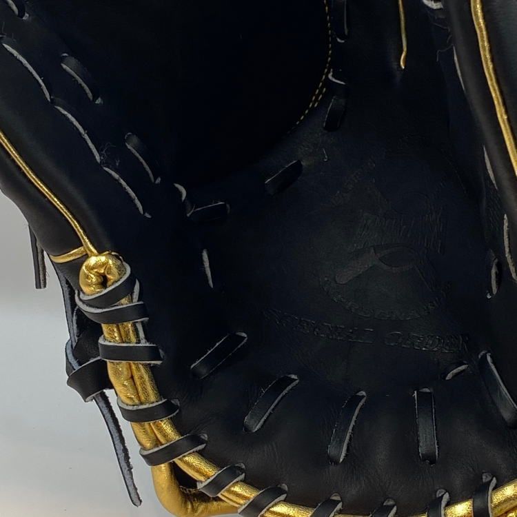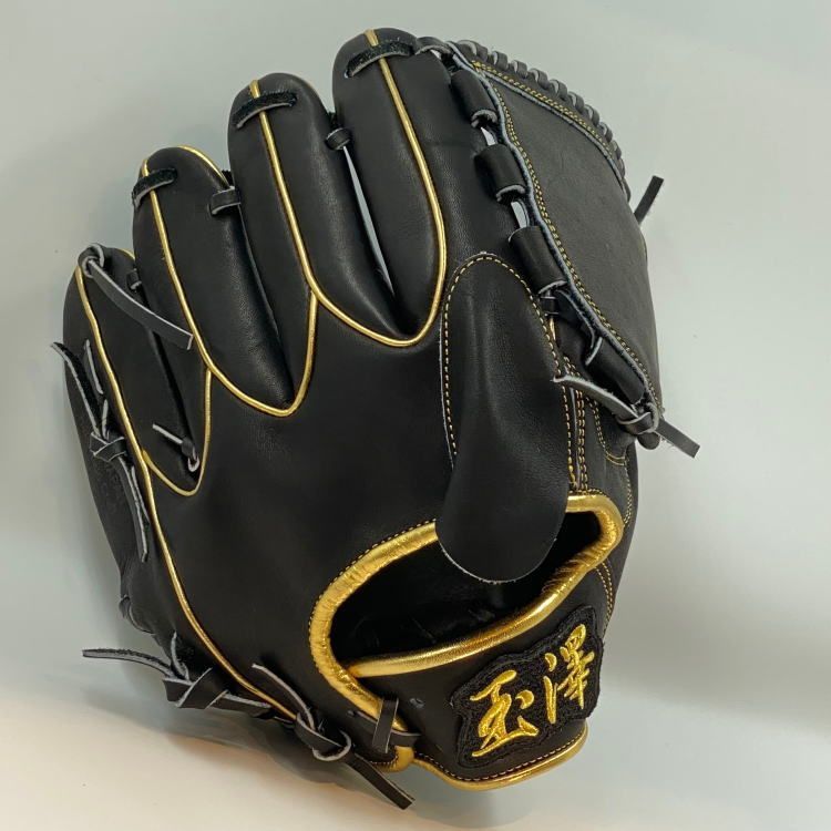玉澤アンバサダーでもある箭内翔太投手が初めて使用した玉澤グローブのモデルです。硬めのブラック革に、ゴールドのヘリとハミダシを用い、男らしさの漂う、上質な逸品です。