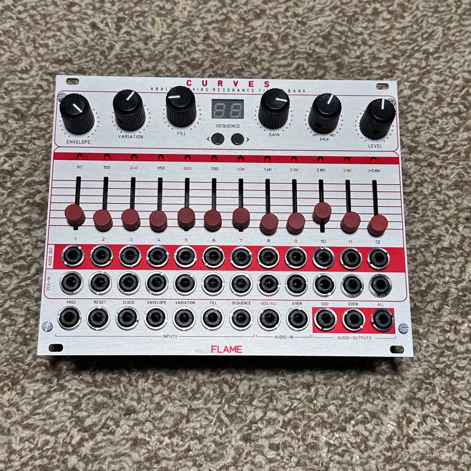 CURVES(カーヴス)は12バンドのアナログ・フィルターバンクとシーケンサーを融合したモジュールです。フィルターバンクをシーケンサーでコントロールする事で、フィルターによるユニークなフレーズを生み出します。