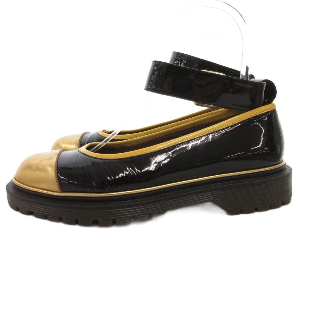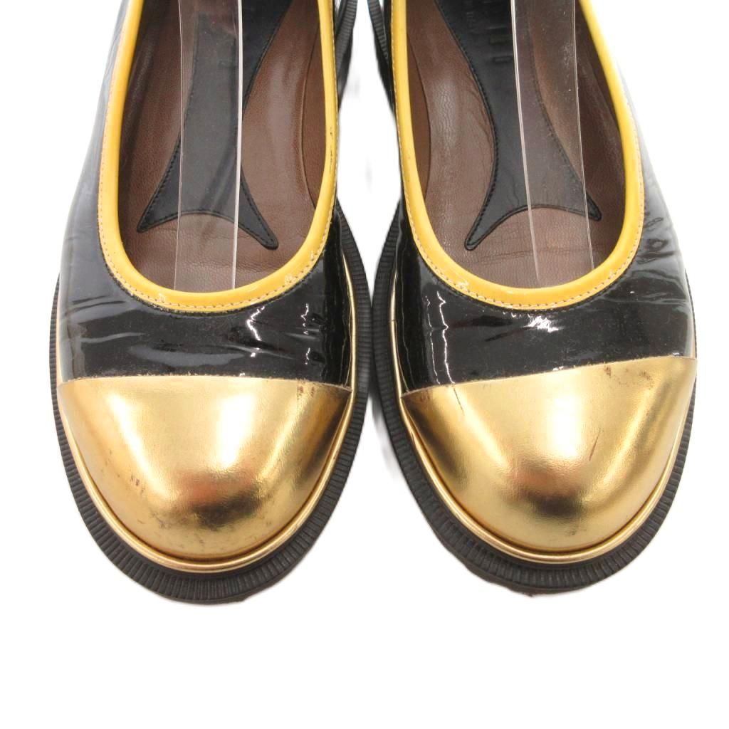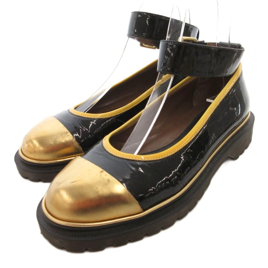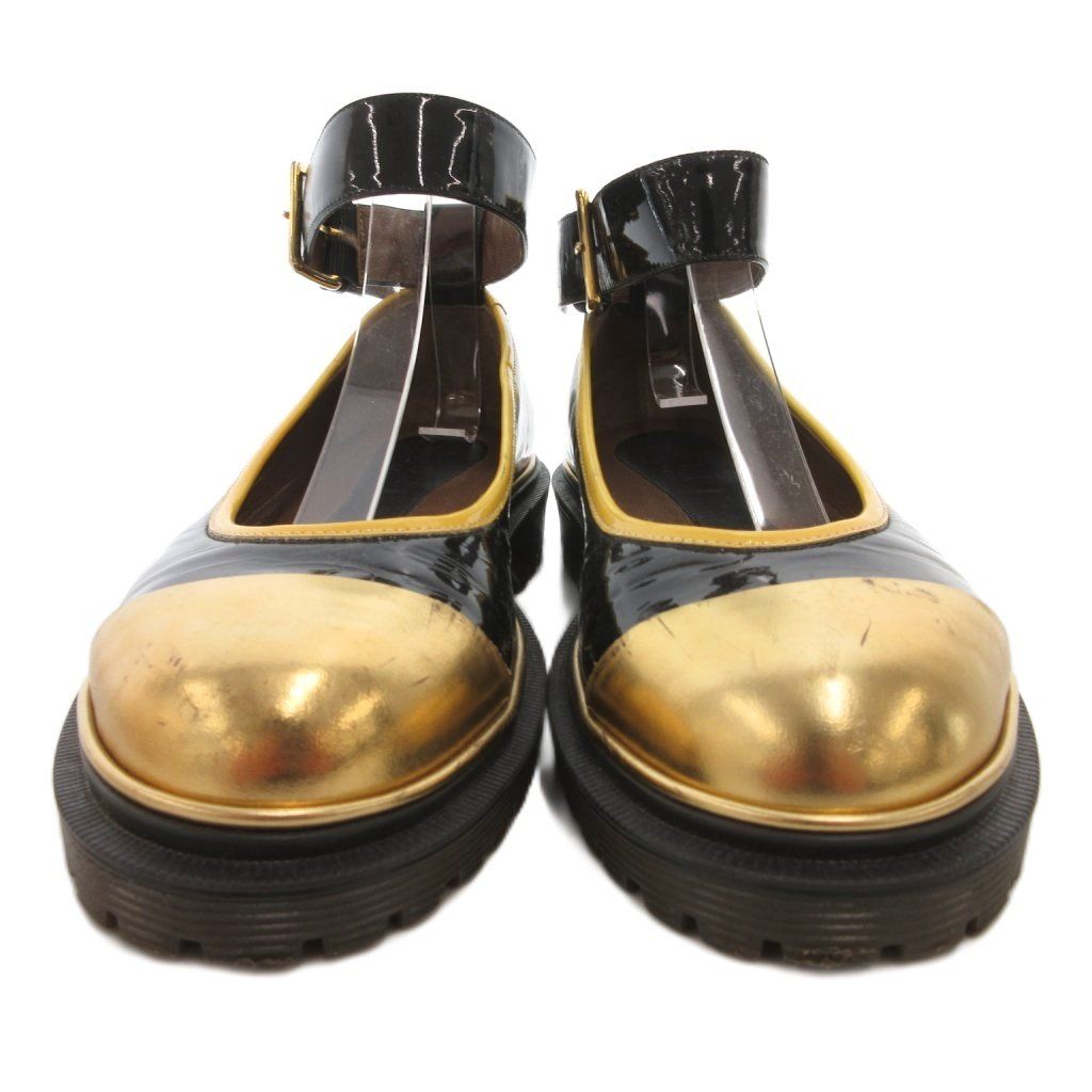 【商品名】マルニ MARNI ストラップシューズ パンプス エナメル レザー 黒 ブラック ゴールドカラー /JS