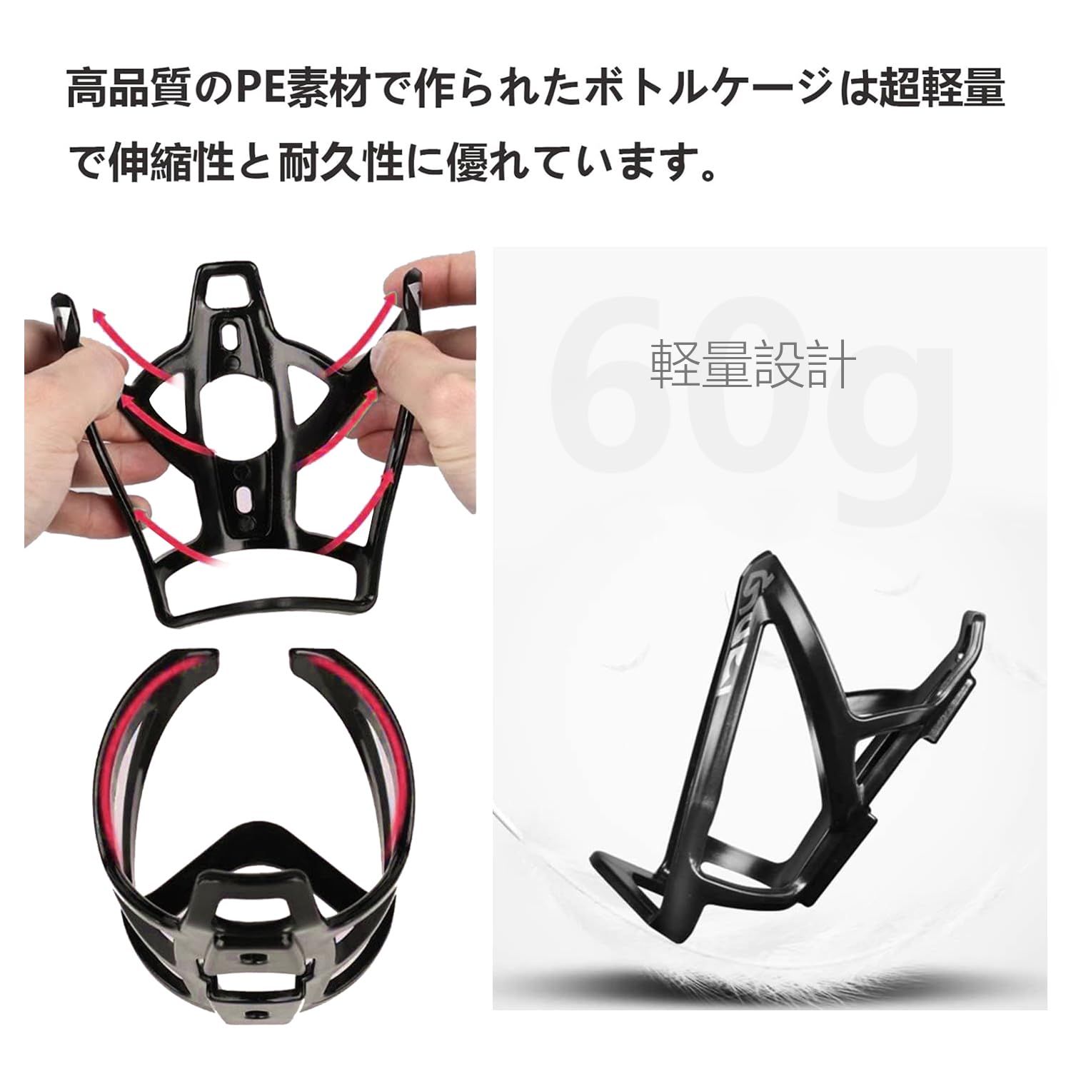 【材質】高品質のPE素材で作られたボトルケージは、超軽量、耐摩耗性が良い、スクラブ表面で、色褪せしないです。