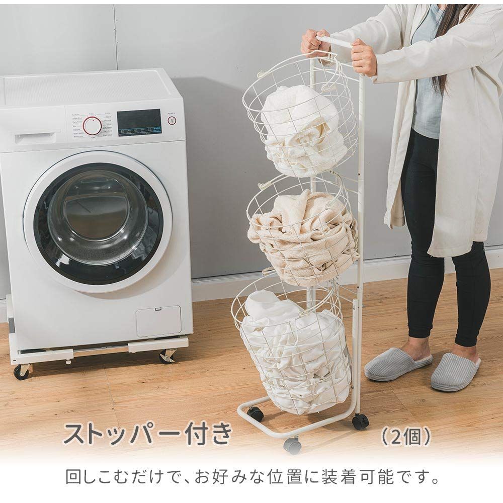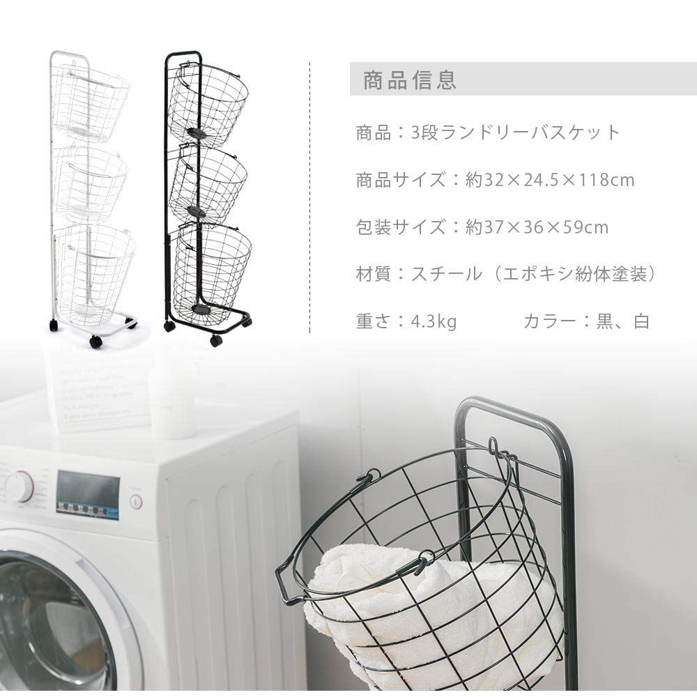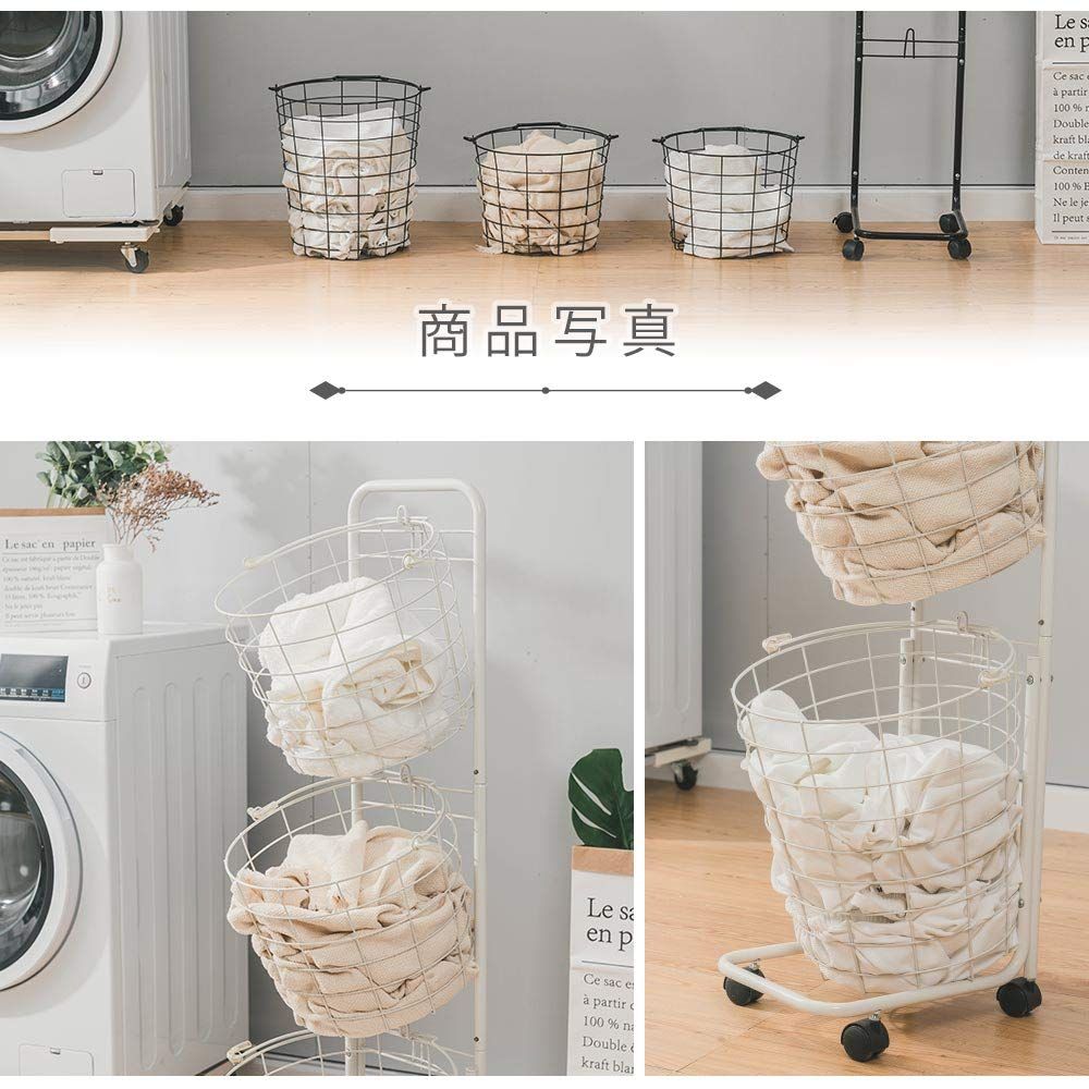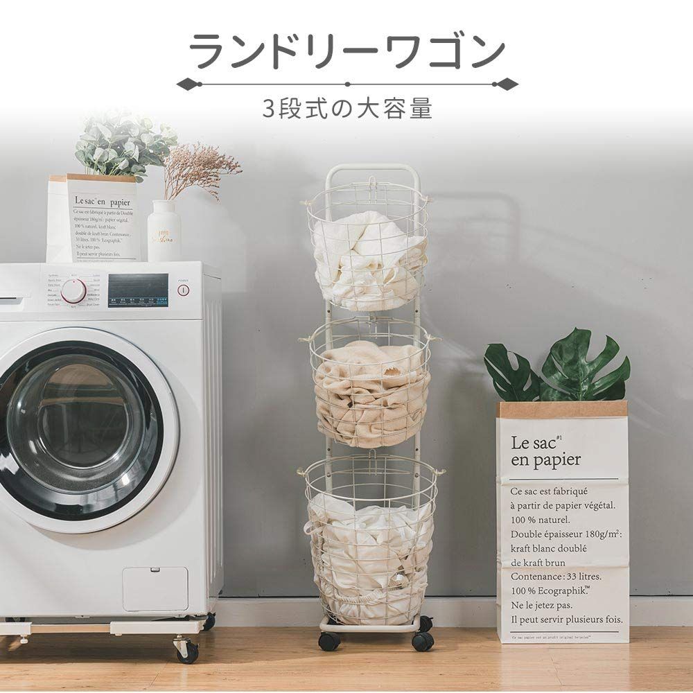 ランドリーラック3段 ランドリー ボックス バスケットワゴン キャスター付き 洗濯カゴ 脱衣かご 取り外し可能 組立品 収納 収納グッズ 隙間収納 (ホワイト)