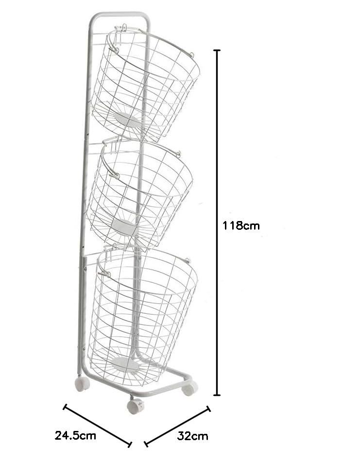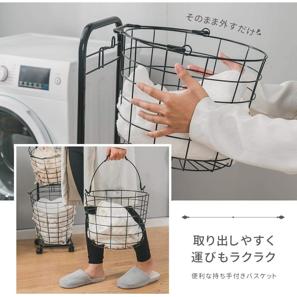 【スペースを節約】ランドリースペースを無駄なく使える縦置き3段タイプ!3つのバスケットは取り外し可能、取り外せるので洗濯物の出し入れも簡単にできます。キャスター付きワゴンなので、掃除する時などスムーズに移動できます。