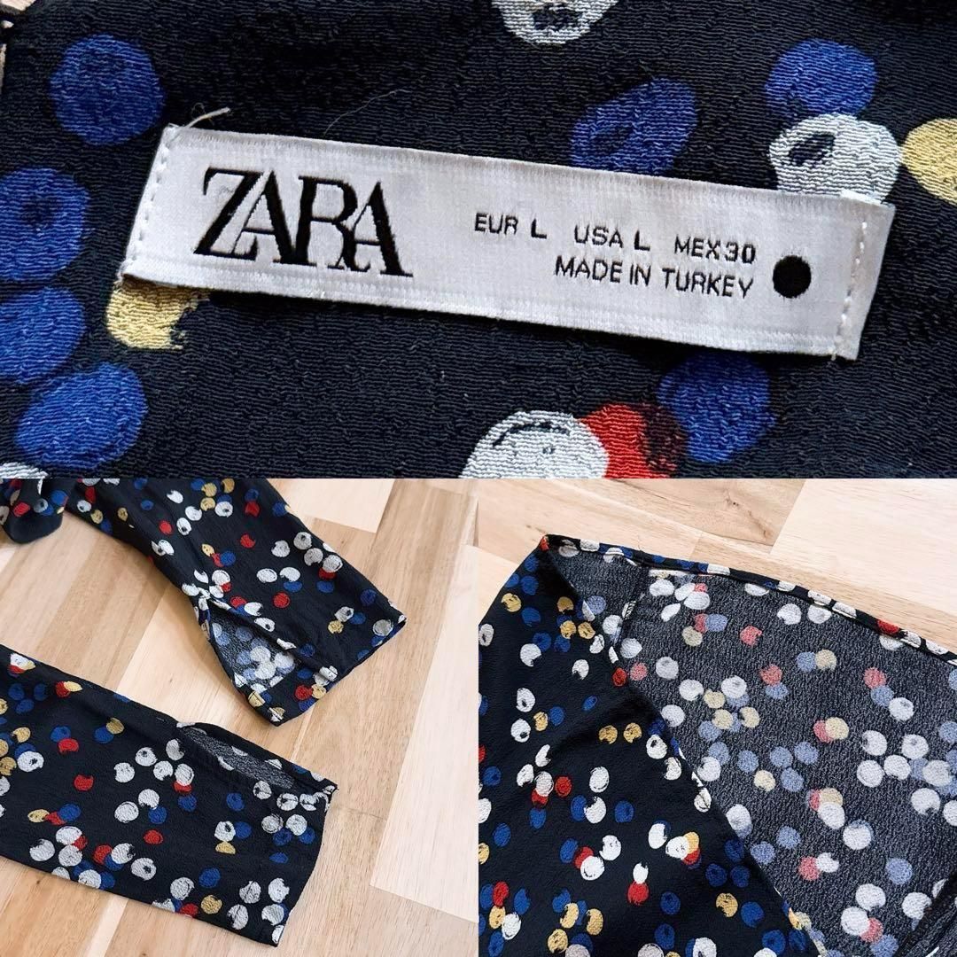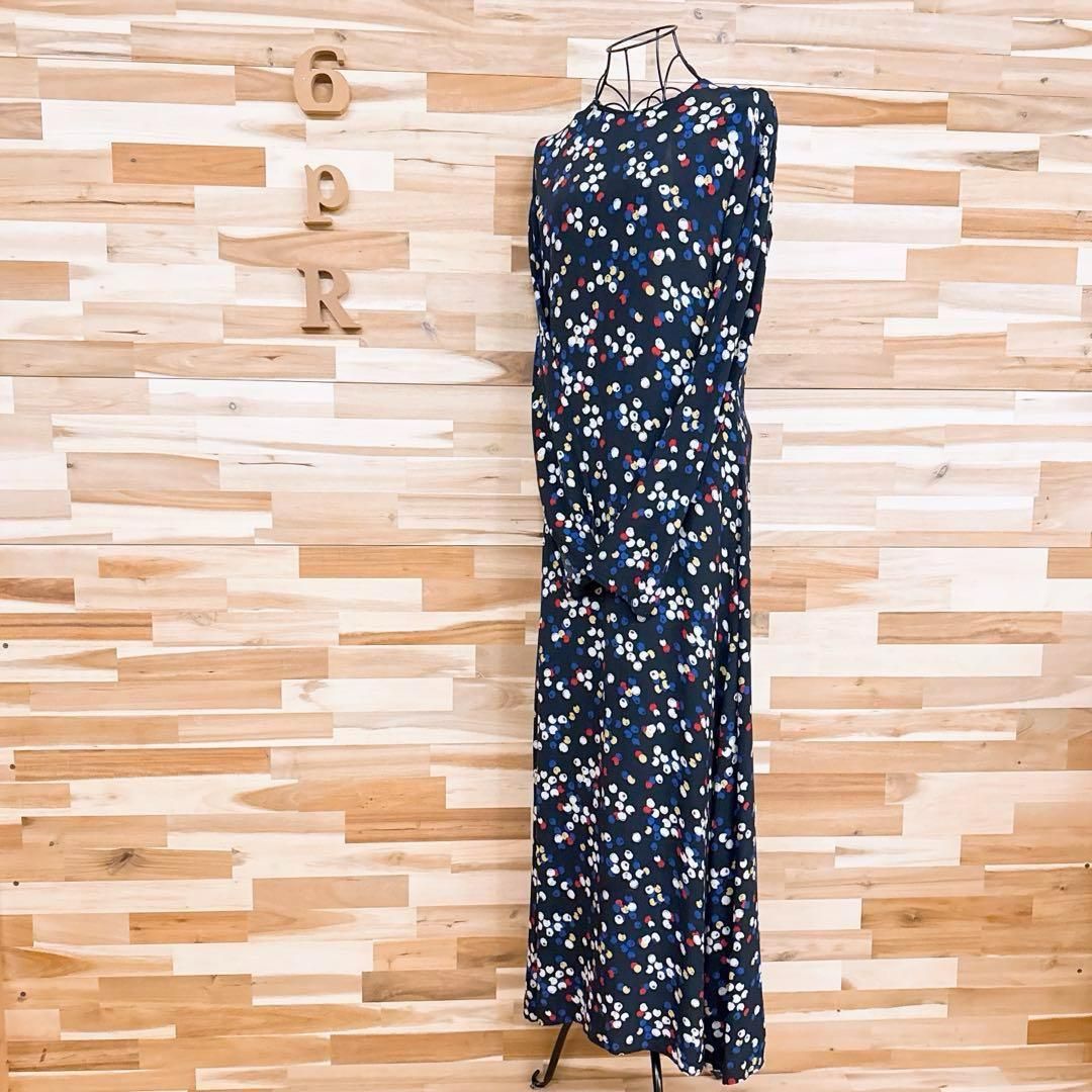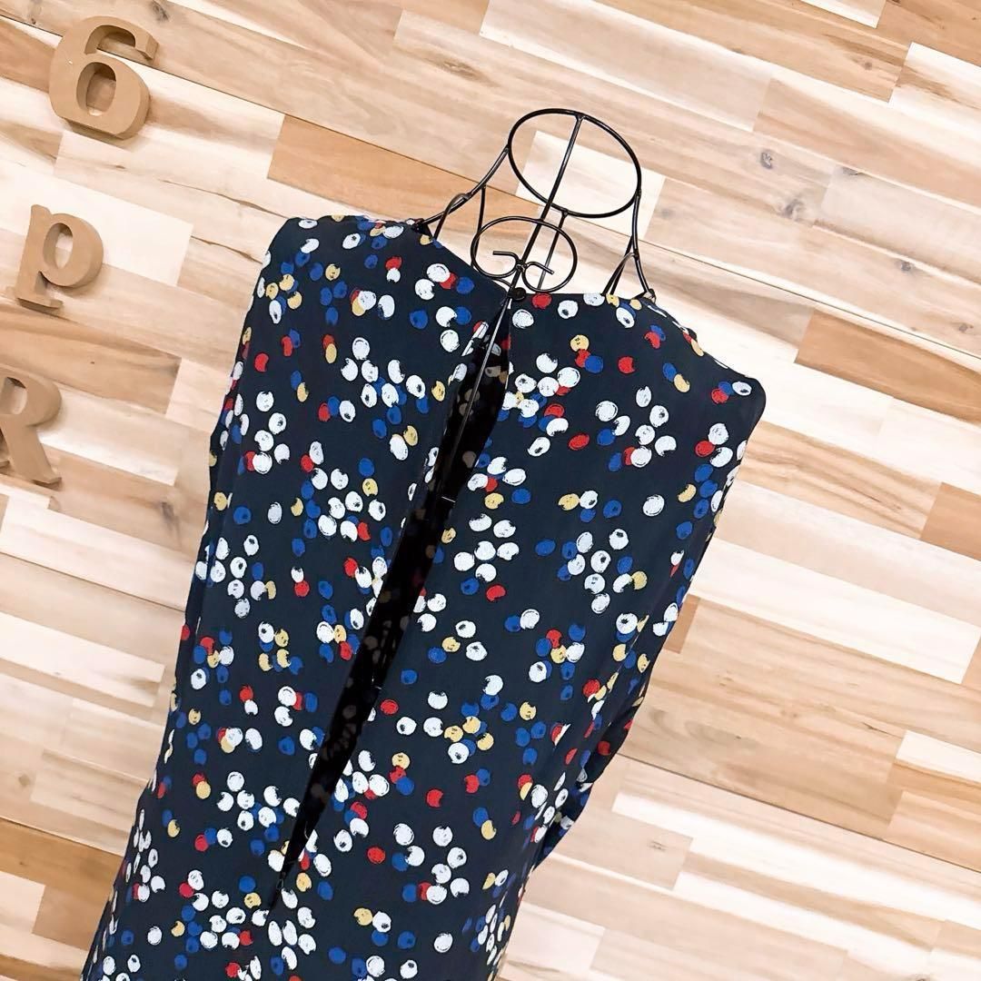 * レーヨン100% / 長袖 *落ち着きのあるネイビーの生地に、ランダムに散りばめられたカラフルなドットが映えるデザイン。さらりとしたレーヨン素材が肌に心地よく、わずかに凹凸のある「ちりめん」のような質感が上品な表情をプラス。ロング丈のシルエットがエレガントに揺れ、動くたびに華やかな印象を与えてくれる、大人オシャレなZARAのワンピースです。※LGスタイラーにて除菌リフレッシュ・スチームクリーニング済みです。