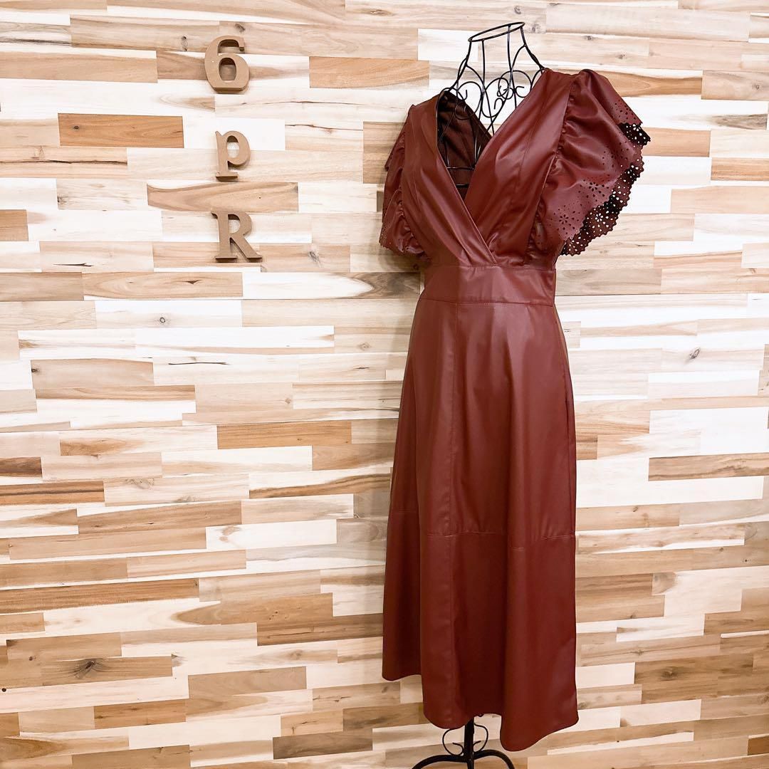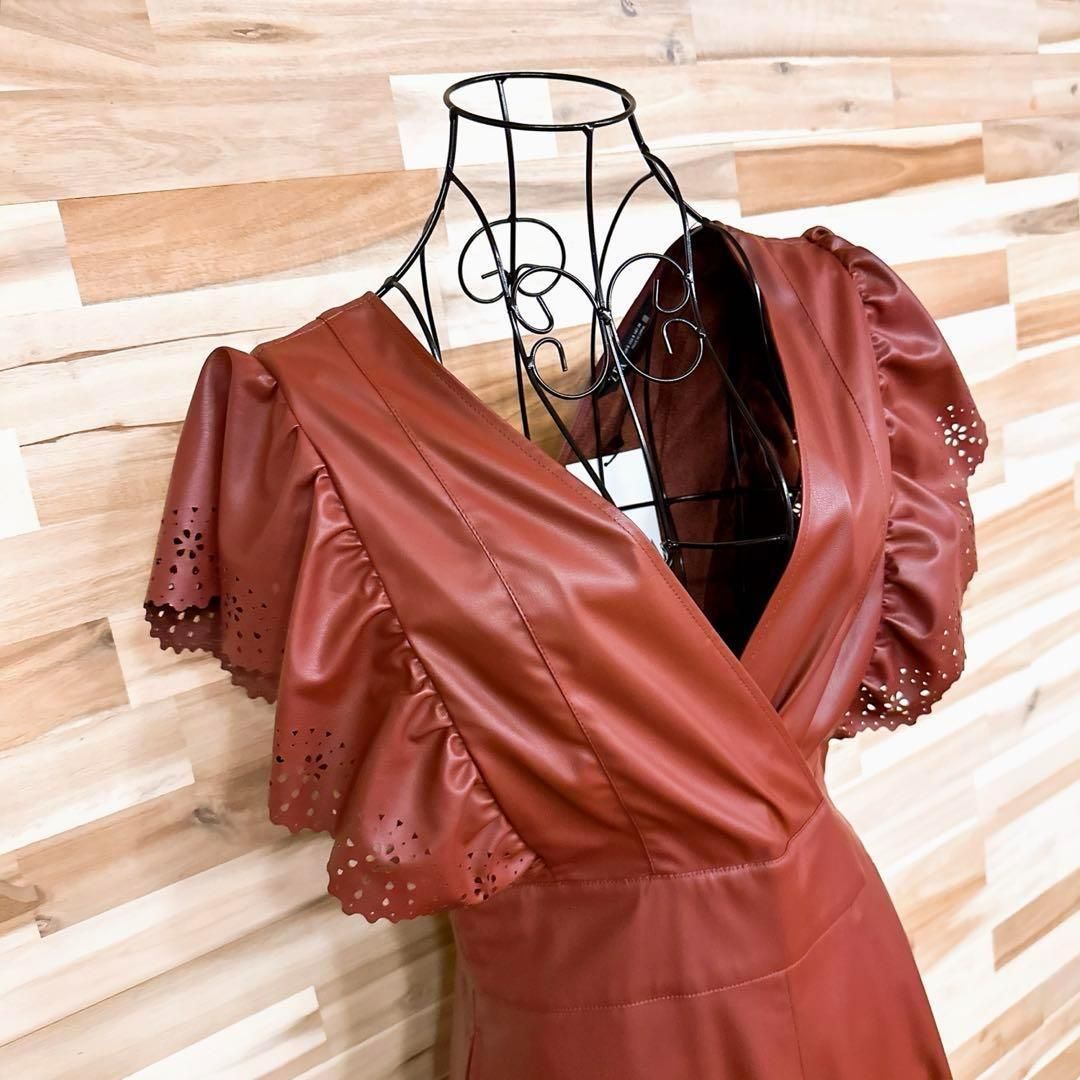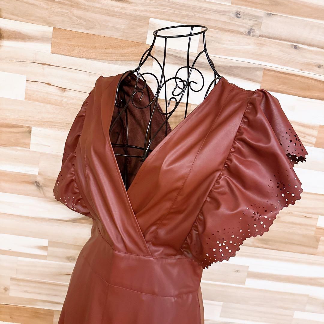 * Vネック / カシュクール *柔らかく滑らかなフェイクレザーが身体に沿って落ち、動くたびに上品な艶を放つ一着。切り絵のような繊細なカットワークを施したスリーブが視線を惹きつけ、エレガントな印象を演出。高めのウエスト位置から流れるように広がるラインが美しいシルエットを描き、女性らしさをより引き立ててくれるZARAのワンピースです。同じデザインを数多く作らないブランドのため、出回る数が少ないお品です。
