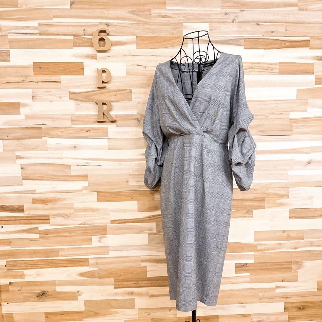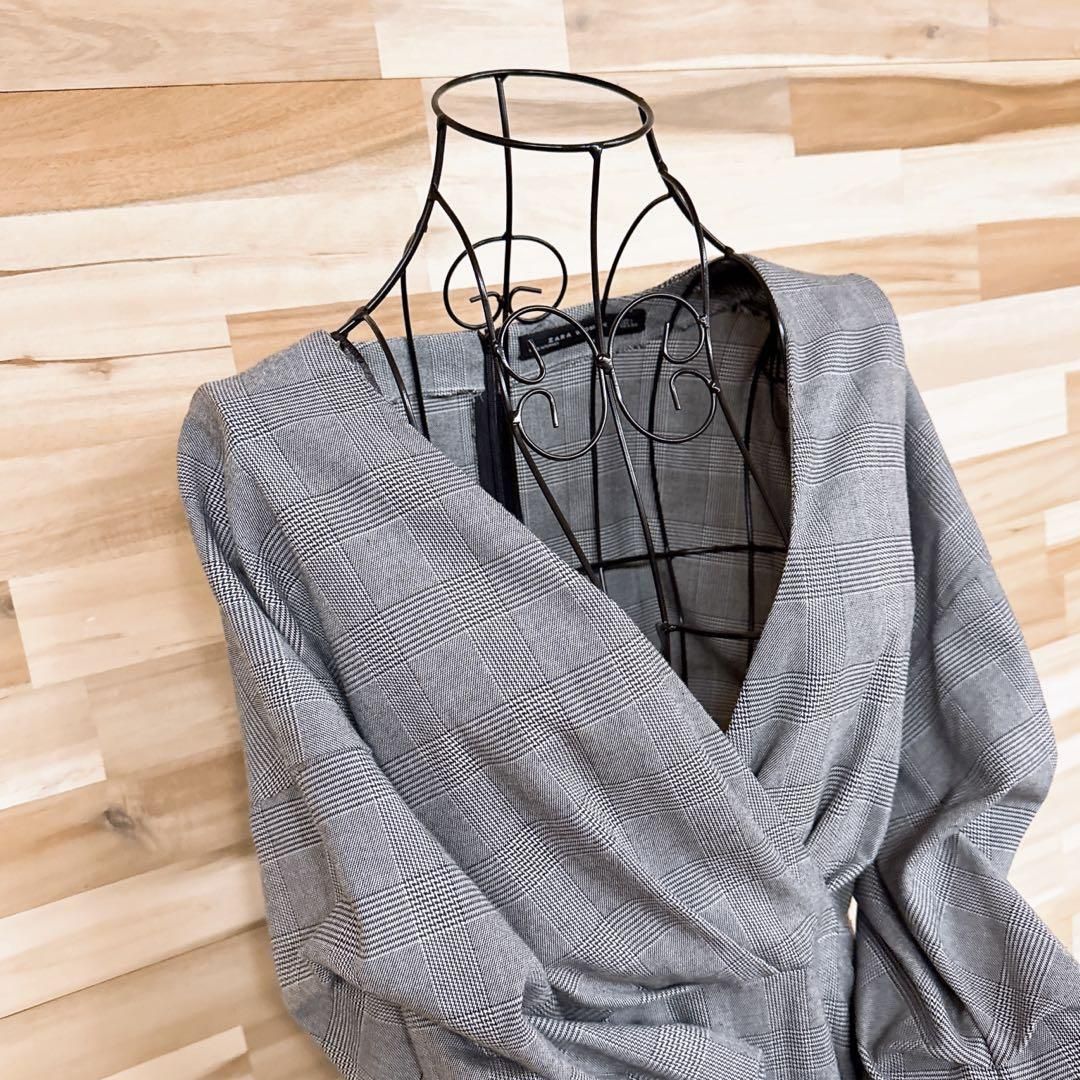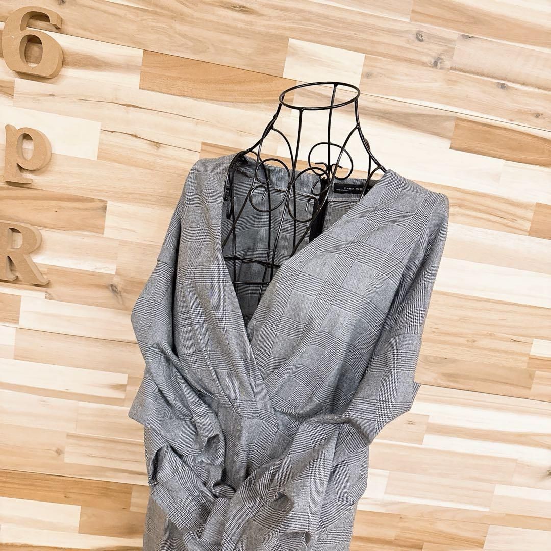 やや薄手の軽やかな素材感が、上品な落ち感を演出。グレーベースに繊細な千鳥格子が広がり、控えめながらも華やかな印象に。『カシュクール』デザインが女性らしさを醸し出し、ふんわりとしたフリル袖のボリュームがアクセント。ヒールを合わせたきれいめコーデも、スニーカーと合わせた抜け感のあるスタイルもお楽しみいただけるZARA WOMANのワンピースです。同じデザインを数多く作らないブランドのため、出回る数が少ないお品です。※LGスタイラーにて除菌リフレッシュ・スチームクリーニング済みです。