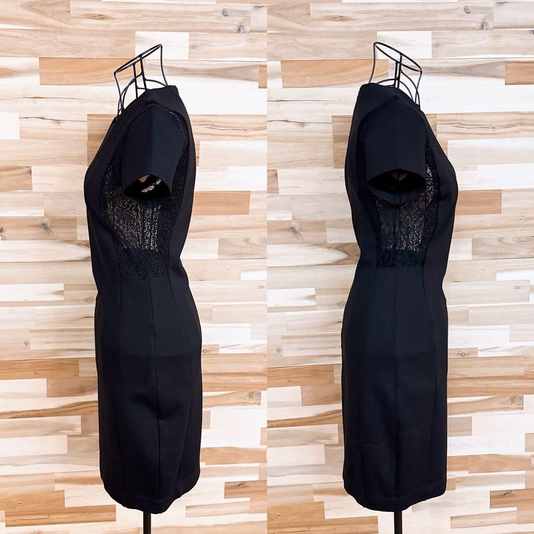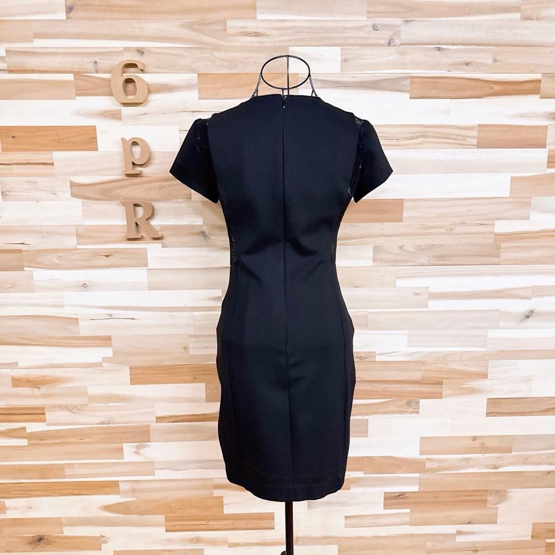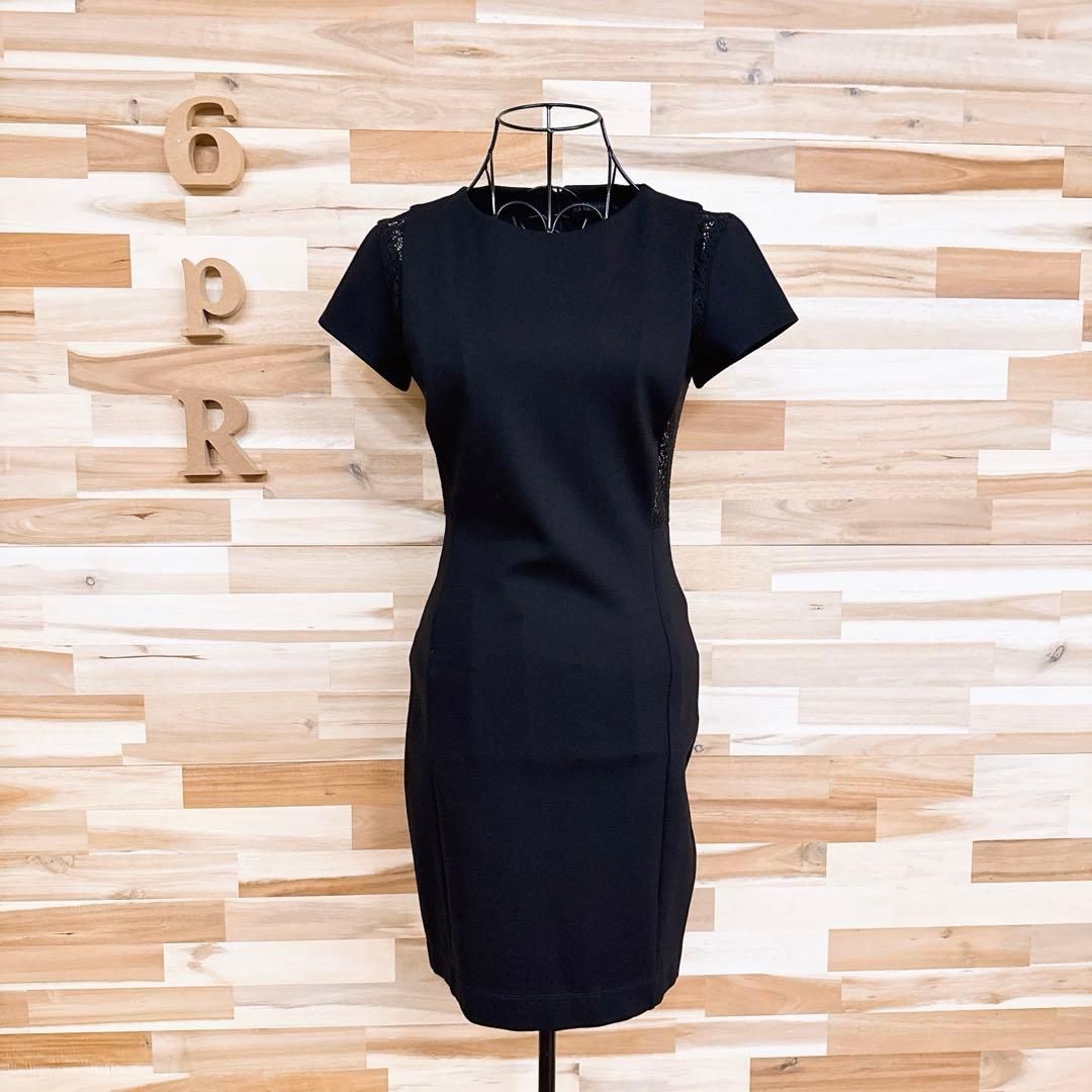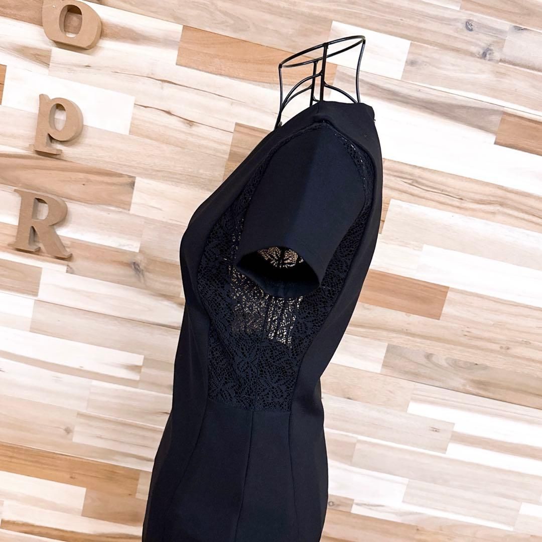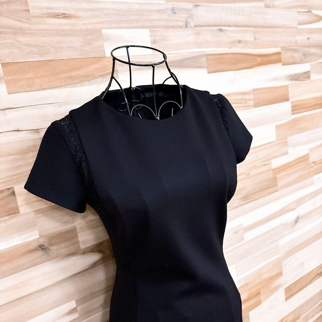 やや中厚手の滑らかで程よくハリのある素材感が上品さを引き立ててくれる一着。両サイドにあしらわれた繊細なレースの切り替えが、さりげなく女性らしさをプラス。ボディラインを美しく魅せるブラックカラーのタイトシルエットが印象的で、一枚で洗練された雰囲気を纏わせてくれるZARAのワンピースです。同じデザインを数多く作らないブランドのため、出回る数が少なく希少性の高いお品です。※LGスタイラーにて除菌リフレッシュ・スチームクリーニング済みです。