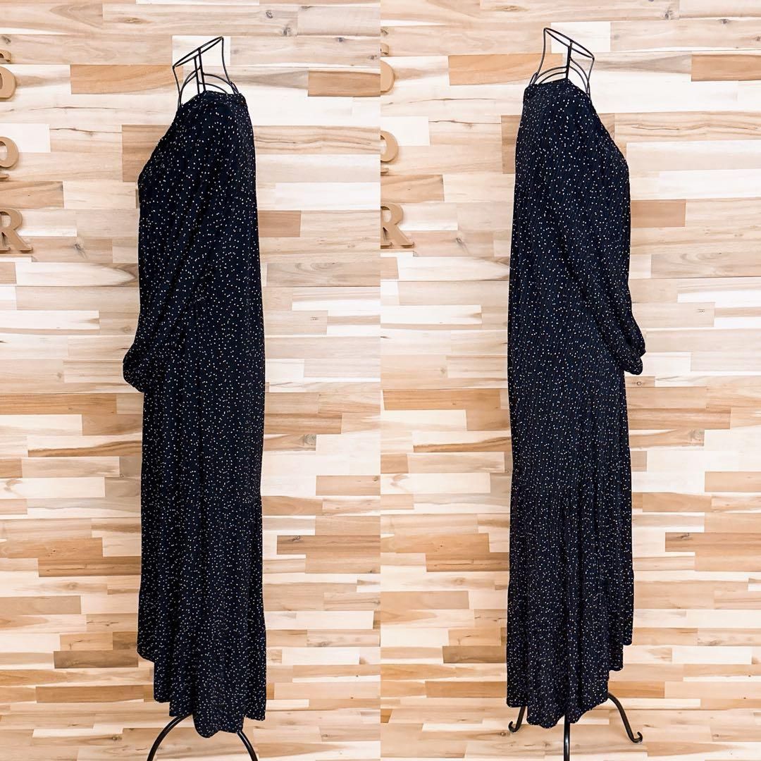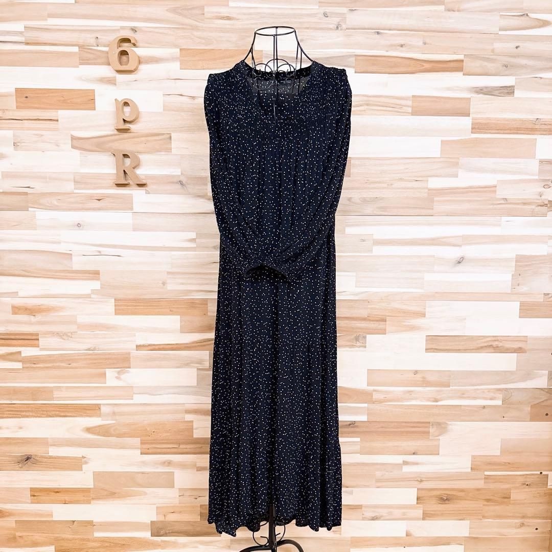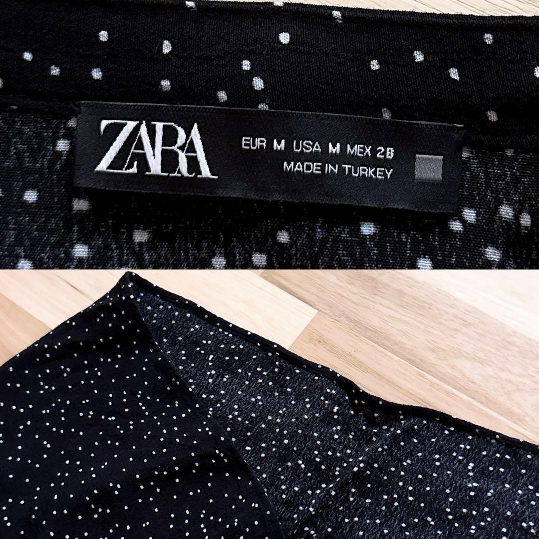 * Vネック / フィッシュテール / 水玉 *表面に僅かな凹凸のある、ちりめん調のさらりと柔らかな質感で、肌になじむような落ち感が心地よい一着。ブラックベースにちりばめられたホワイトの細かなドットが、控えめながらもリズムを感じさせるアクセントに。胸元の細やかなギャザーが立体感をプラスし、すっきりとした印象が大人オシャレなZARAのワンピースです。※LGスタイラーにて除菌リフレッシュ・スチームクリーニング済みです。