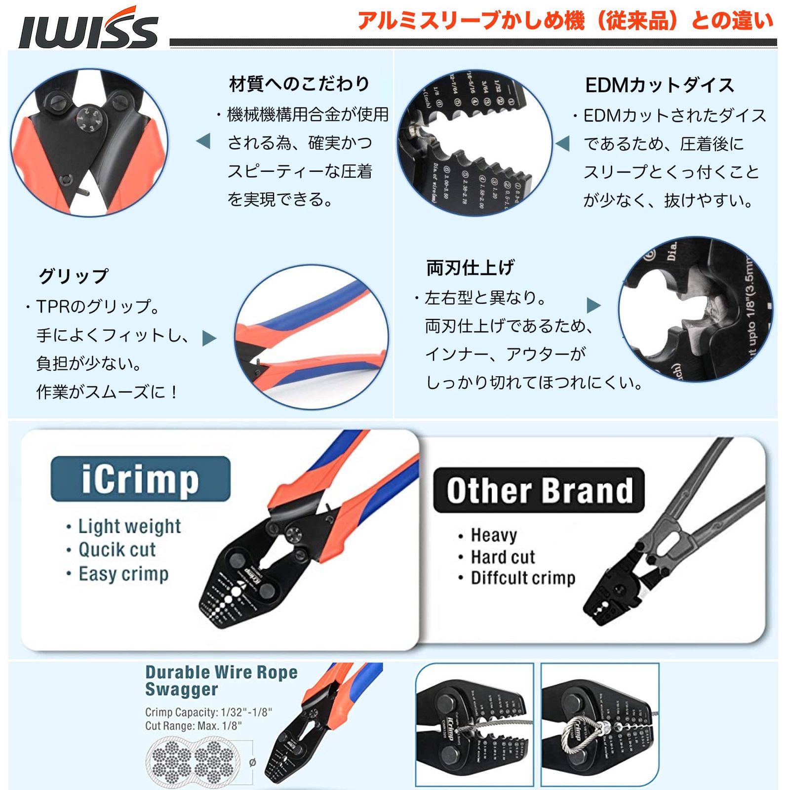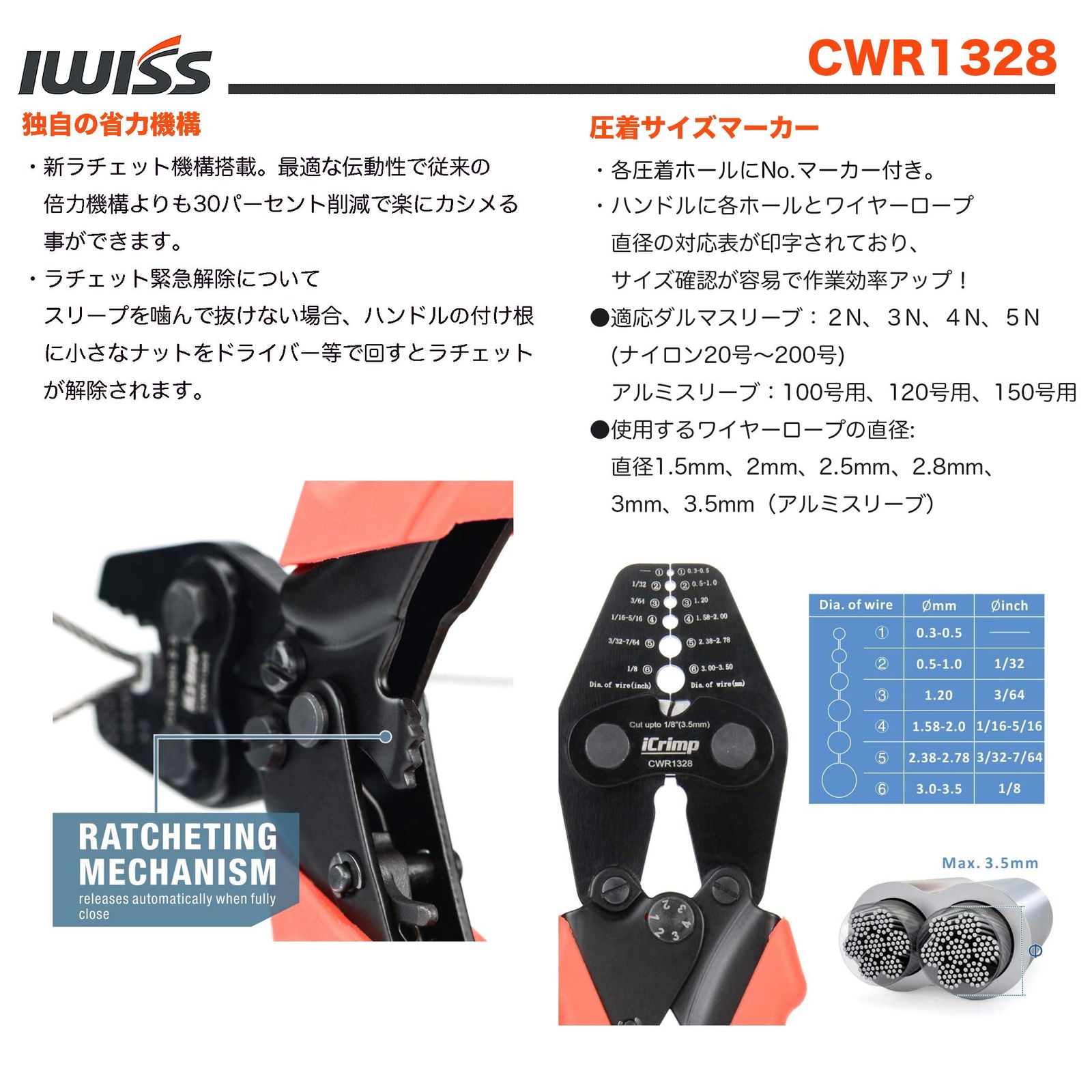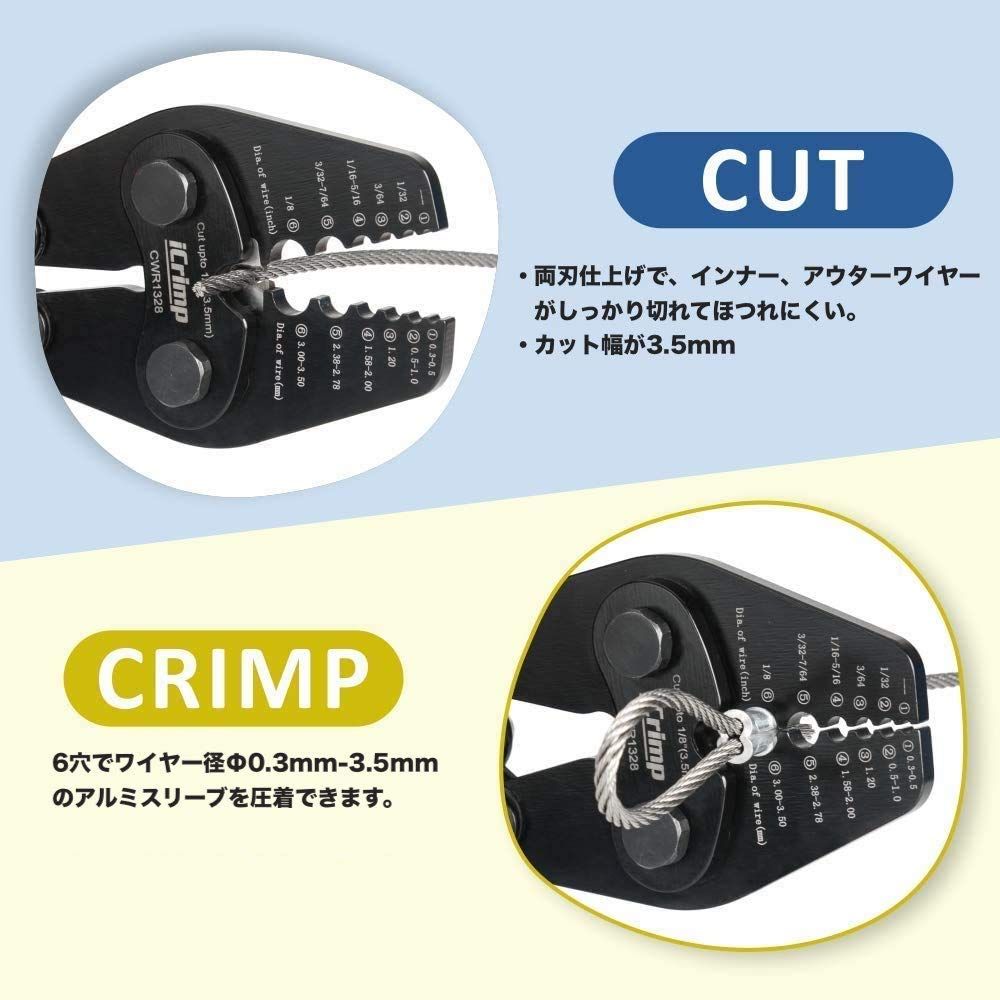 アイクリンプ(iCrimp) ラチェット式 ハンドプレッサー オーバルスリーブ アルミスリーブ かしめ機 ワイヤークランプカッター 圧着 切断 1丁2役!φ0.3mm-φ3.5mm対応 CWR1328