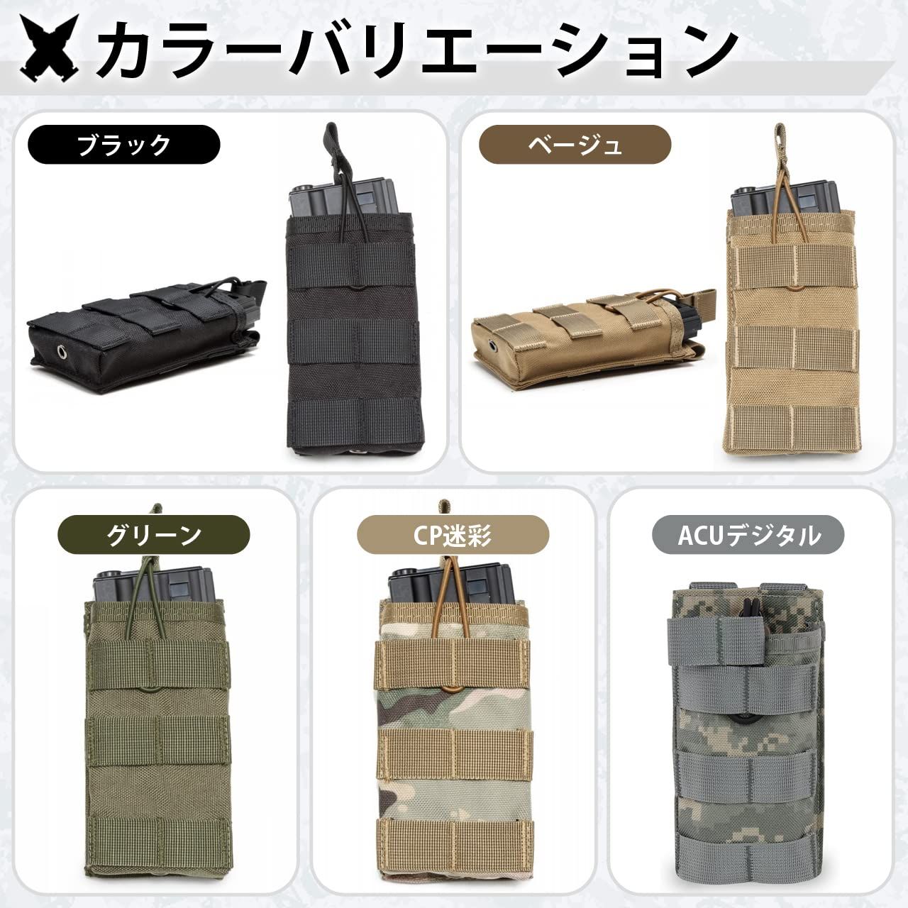 ?【マガジンポーチ】単式のマガジンポーチでAK、AR、M4、M16などのマガジンに対応しております。