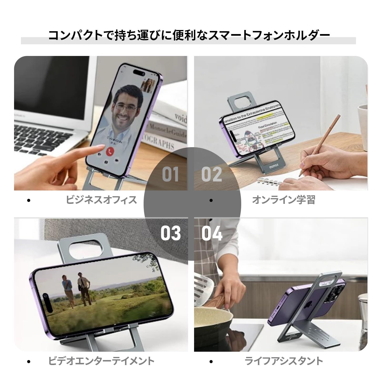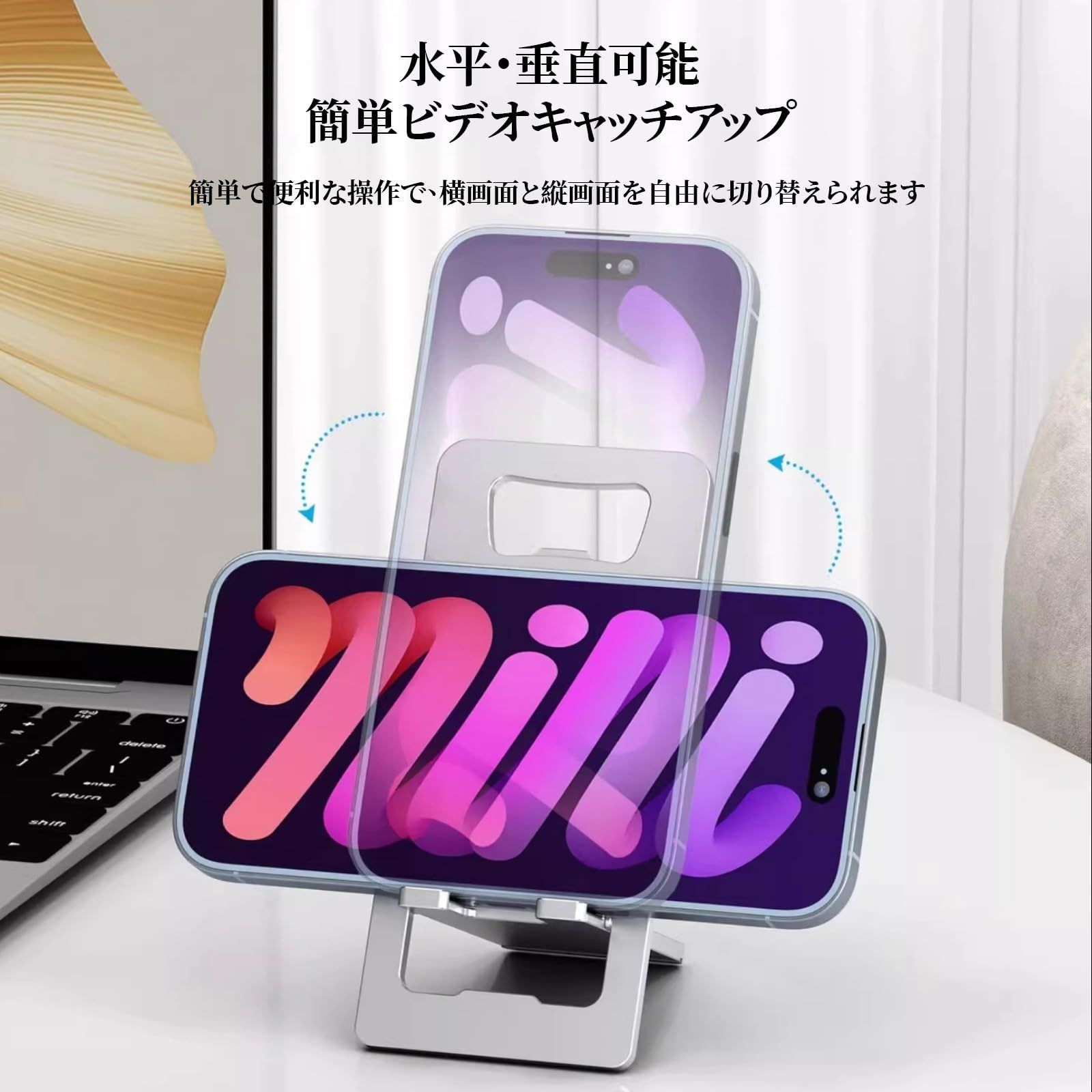 スマホスタンド 薄型 アルミ合金製 携帯スタンド 持ち運びに便利 iphoneスタンド 折りたたみ式 卓上 手机支架 角度変換可 4.7-6.8インチのiPhone Android スマホ置き