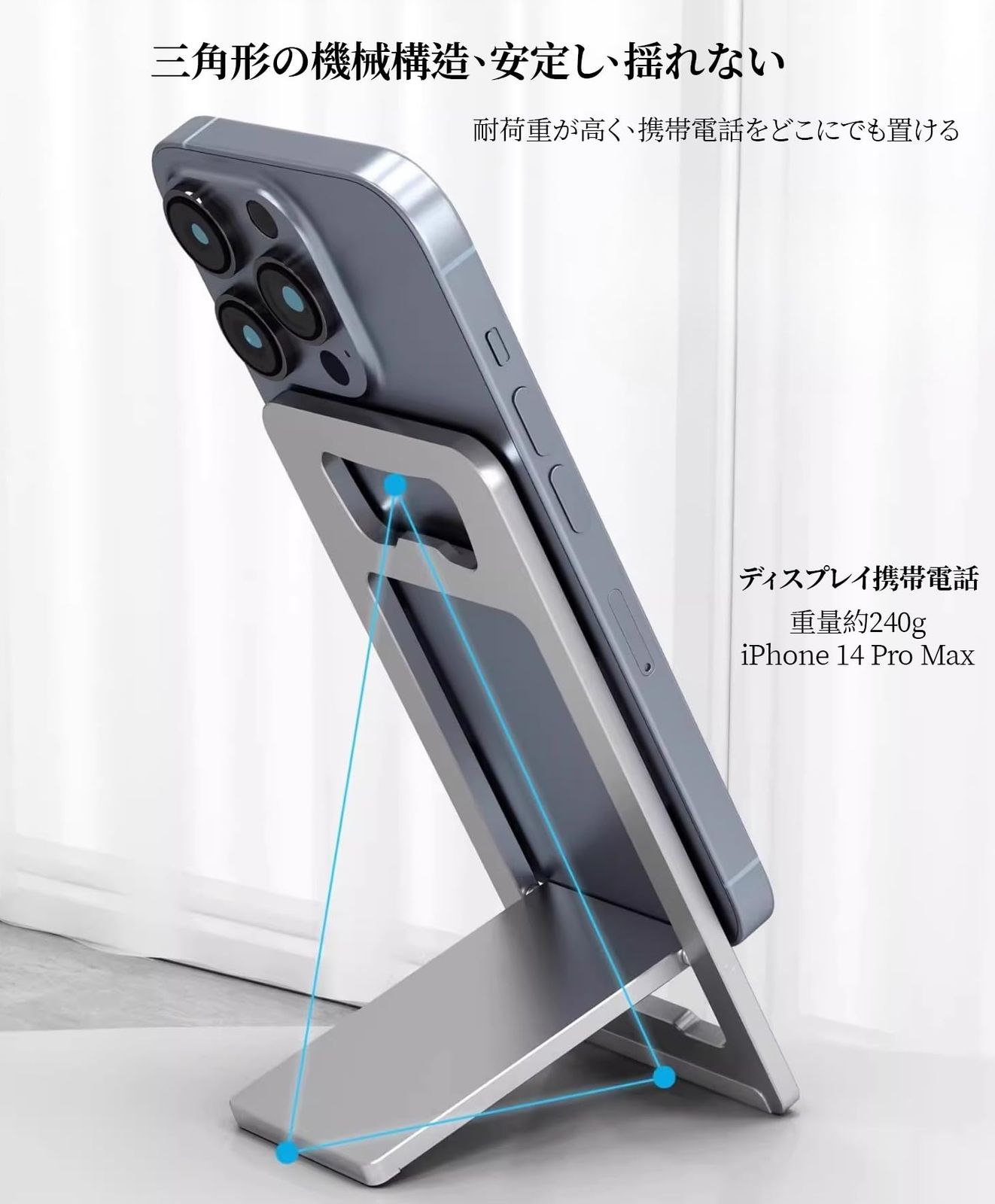 高品質素材: アルミニウム二アンモニウム合金ボディは耐久性があり、スタイリッシュでスマートフォンを引き立てます。スマートフォンとテーブルを保護する滑り止めシリコンパッド付き。