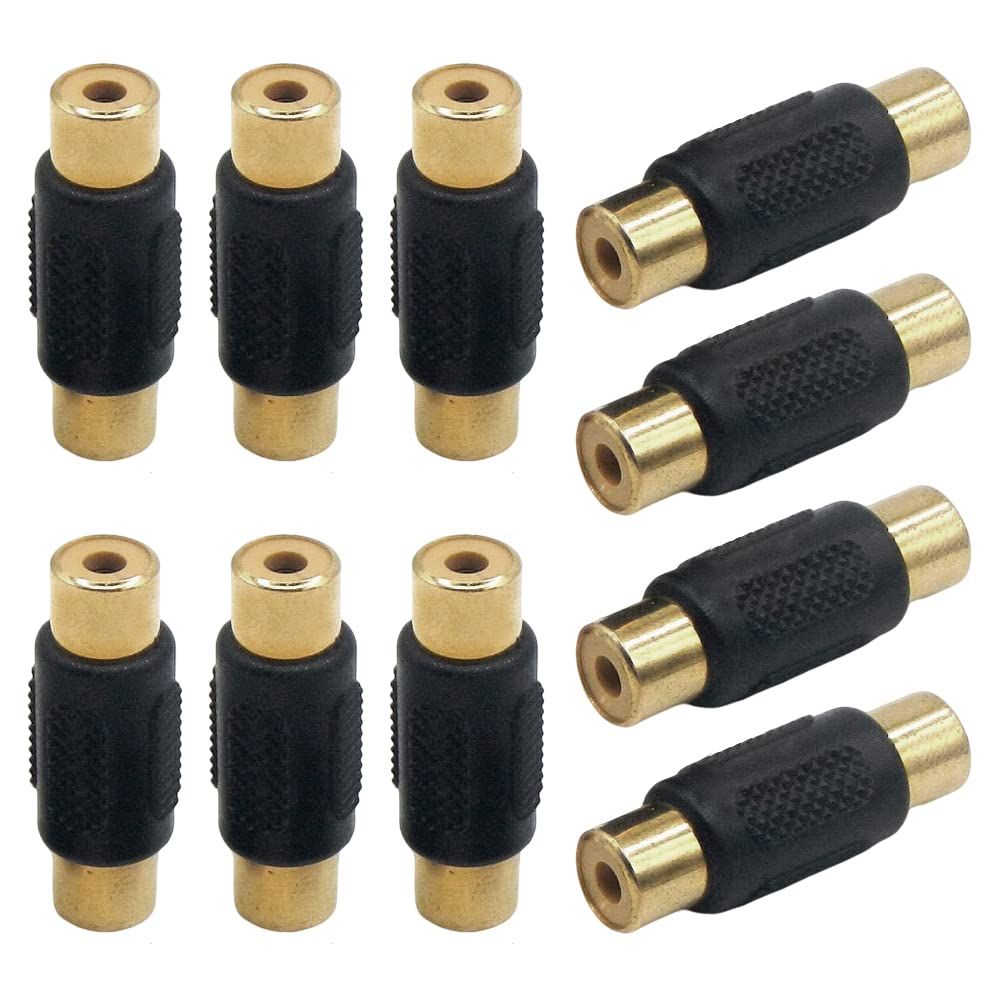 RCA 延長アダプタ メスメス 中継プラグ 10個セット 延長 中継 コネクタ プラグ 変換アダプタ メスメスコネクタ 金メッキ カーステレオ/スピーカー/モニターなどに