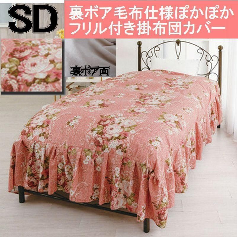 裏ボア毛布仕様ぽかぽかフリル付き掛布団カバー セミダブル ピンク