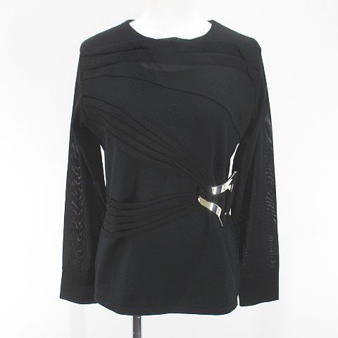 【商品名】ノアー NOIRE 長袖 ニット セーター カットソー L 黒系 ブラック イタリア製 シースルー 透け感 金具 毛 ウール 無地