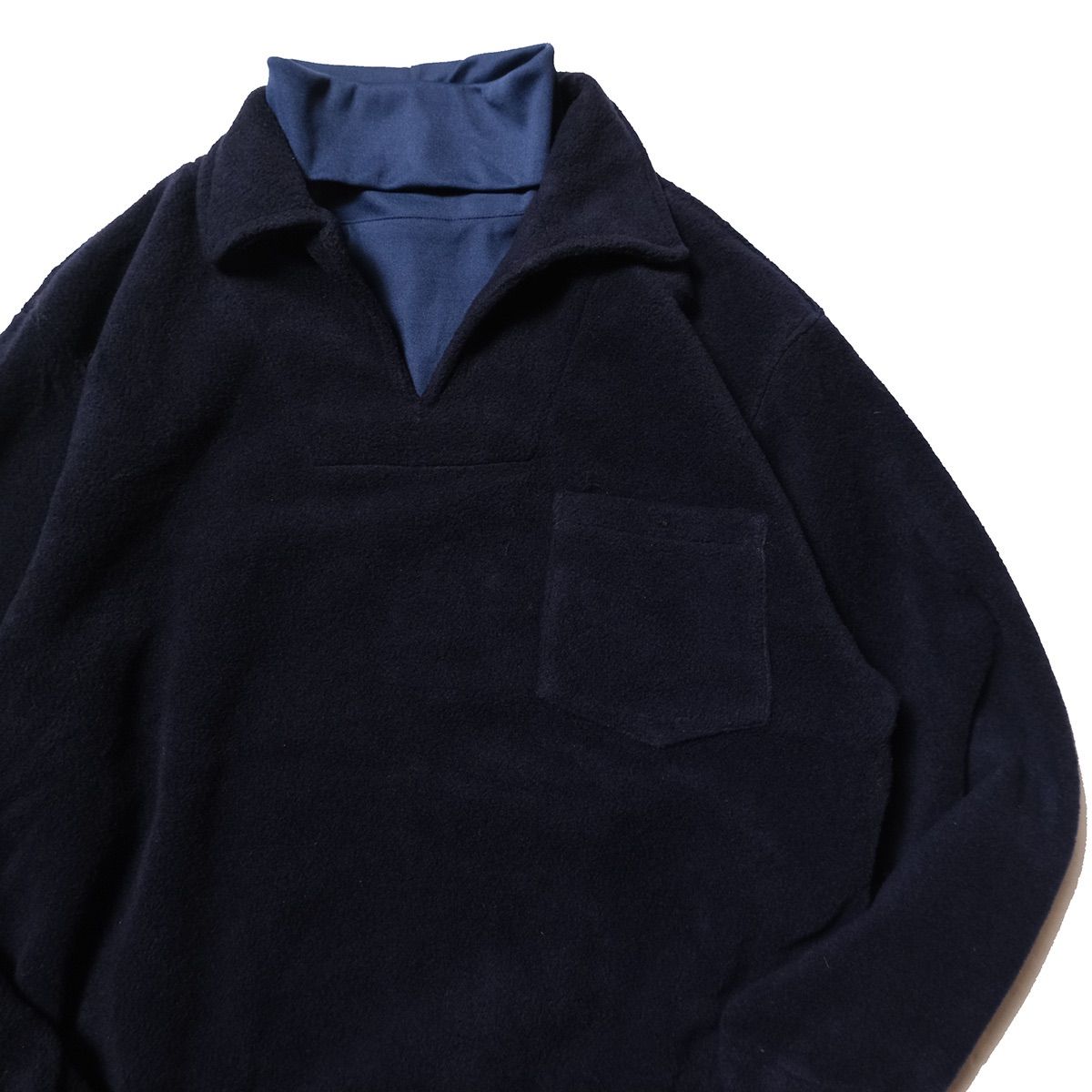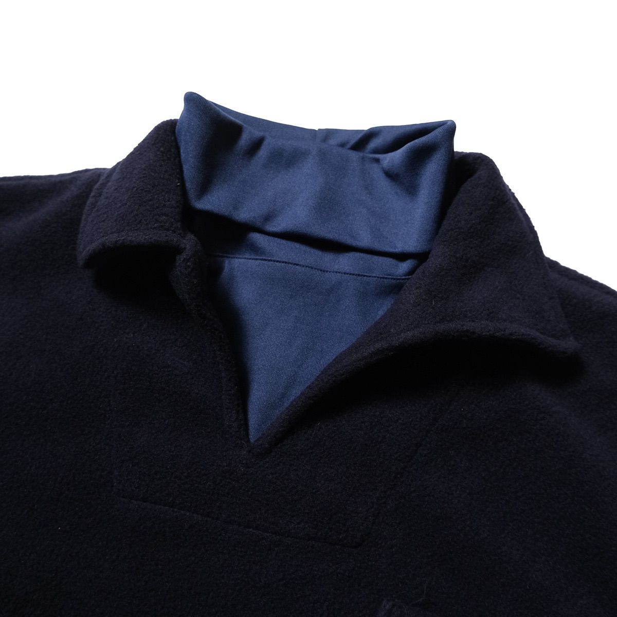 襟元はリブ素材のタートル付きのレイヤーデザイン、