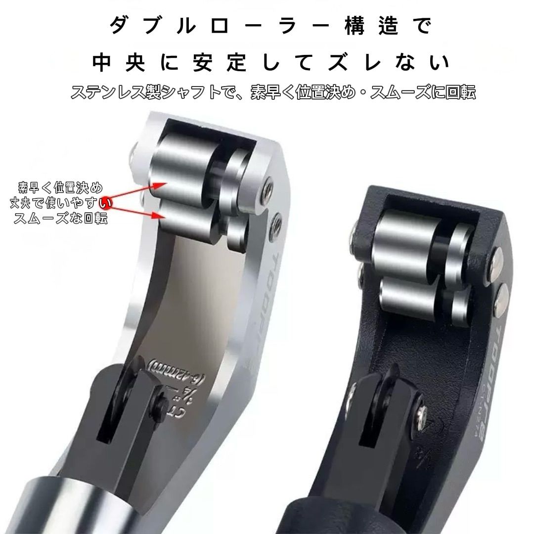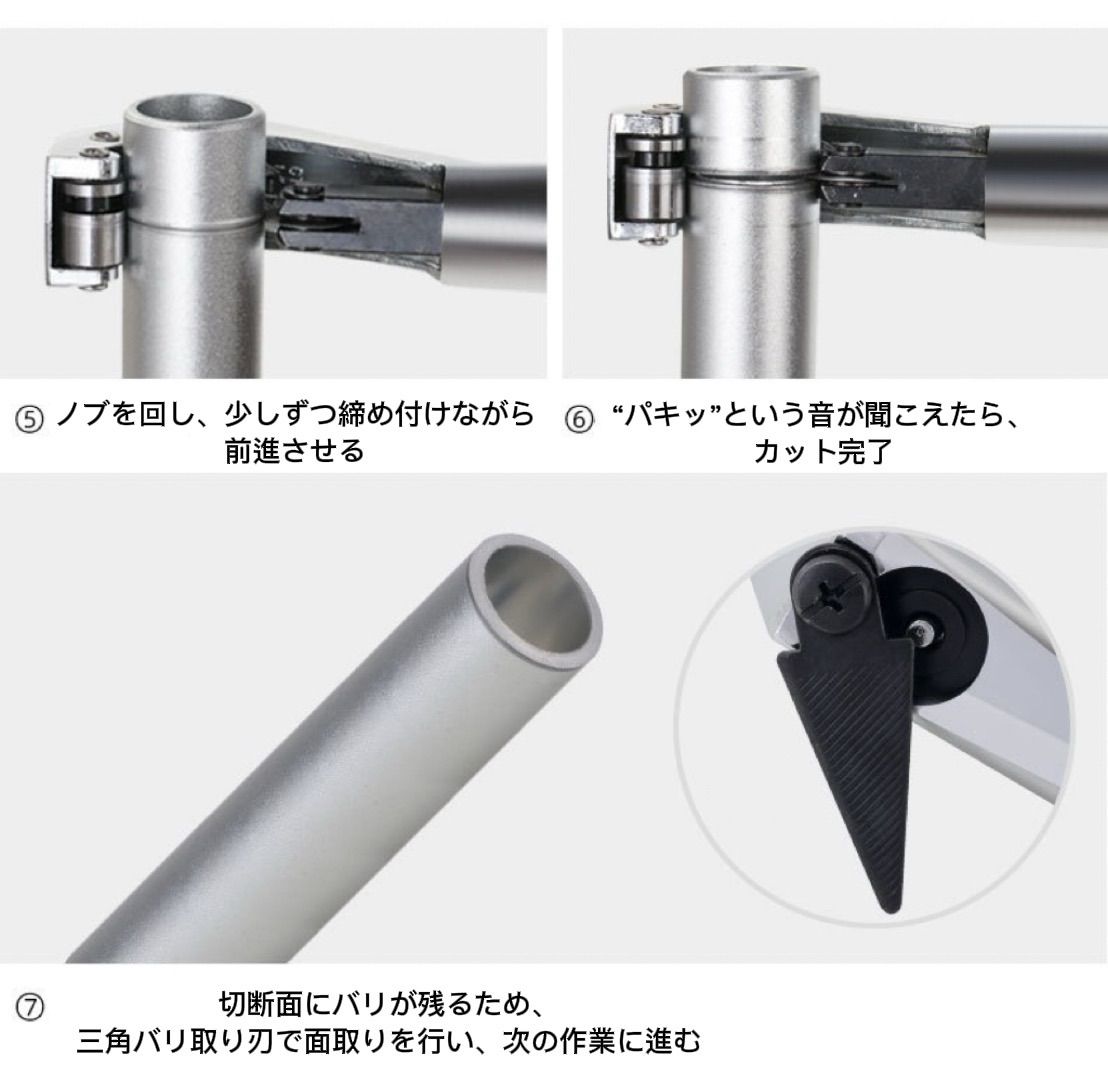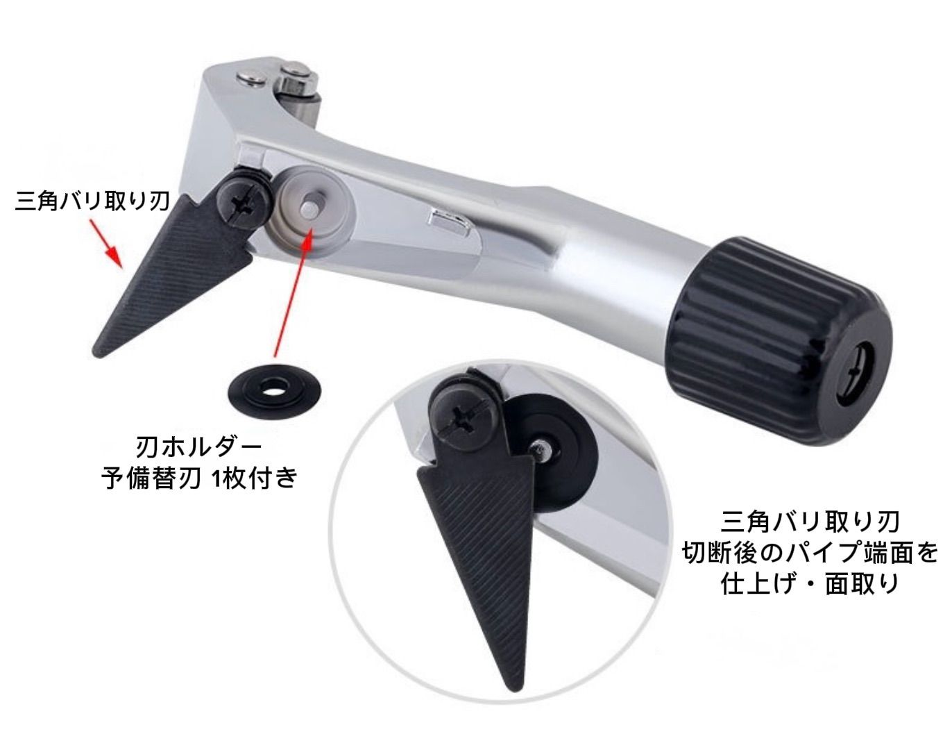 商品仕様:全長:15cm。重さ:255g。バリ取りカッター付き(本体と一体型)。 切断能力:切断可能な直径:6~42mm。切断可能な厚さ:3mmまで。切断可能な素材:銅管、アルミ管、ステンレス管、塩ビ管などです。 幅広く用途:配管工事はもちろん、物干し竿、自転車のシートポスト、イレクターなど好みのサイズにカット用、または不用なものを処分する際にもとても役に立ちます。 おススメ対象:配管工事を仕事でする方、DIYなどで配管まで自分でする方、コンパクトで使い方が簡単、初心者または女性にも扱いやすいです。 注意事項:1.圧力に弱いガラスなど素材のパイプには使用できない。2.回転刃を直接手で触れないように気を付けてください。3.パイプを切断した後の切り口は鋭いので指切れる恐れがあり、お取扱いにご注意ください。