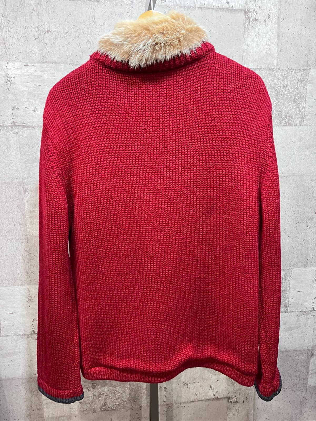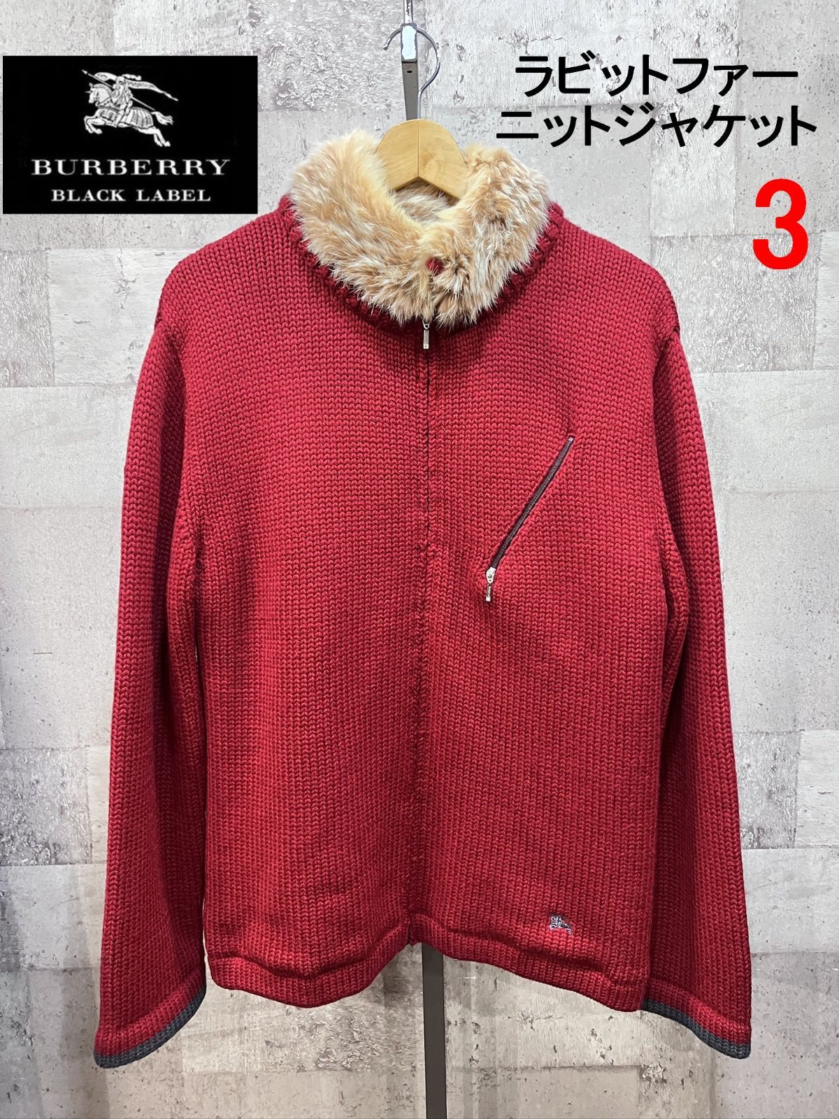 バーバリーブラックレーベル ラビットファー ジップアップ セーター 3 メンズ ニット 赤 レッド BURBERRY BLACKLABEL