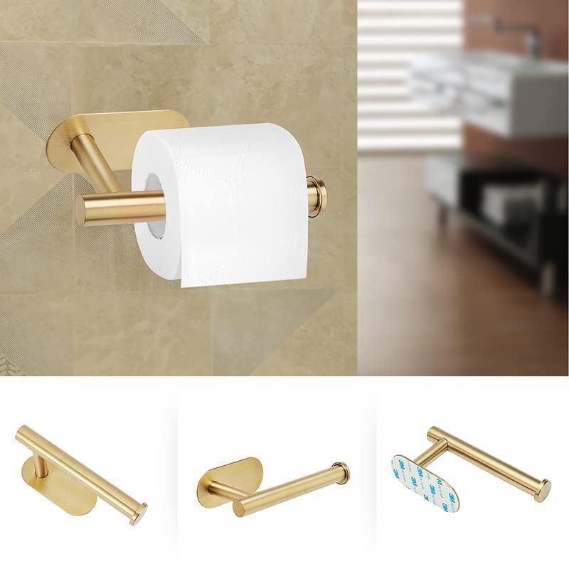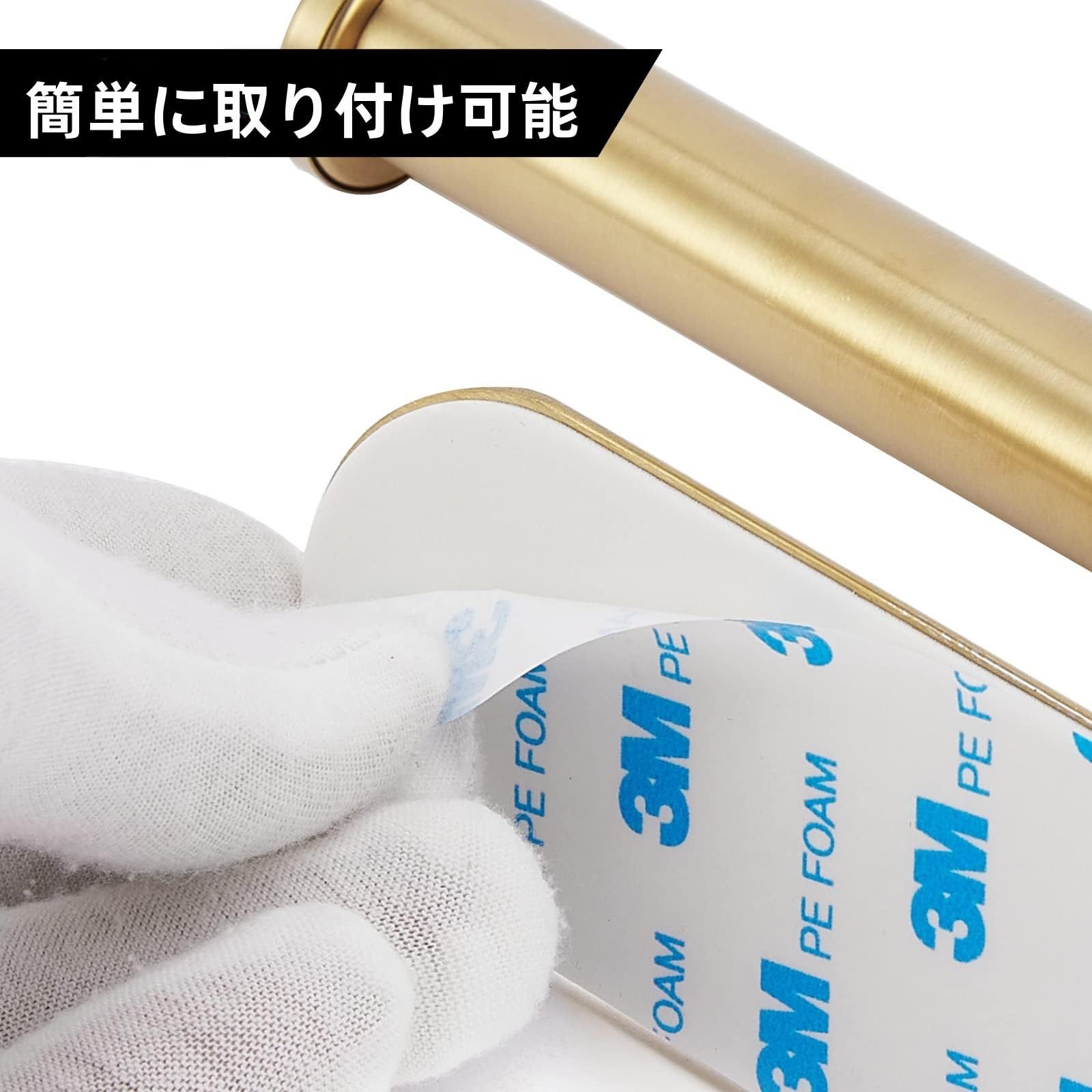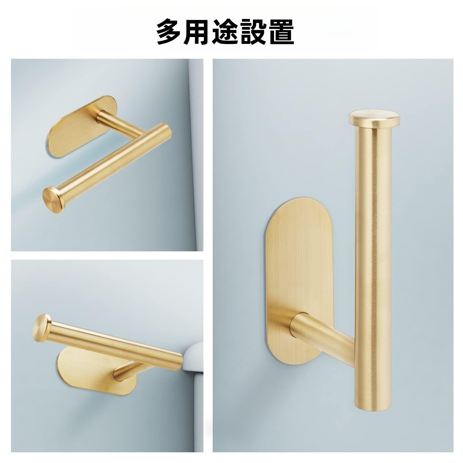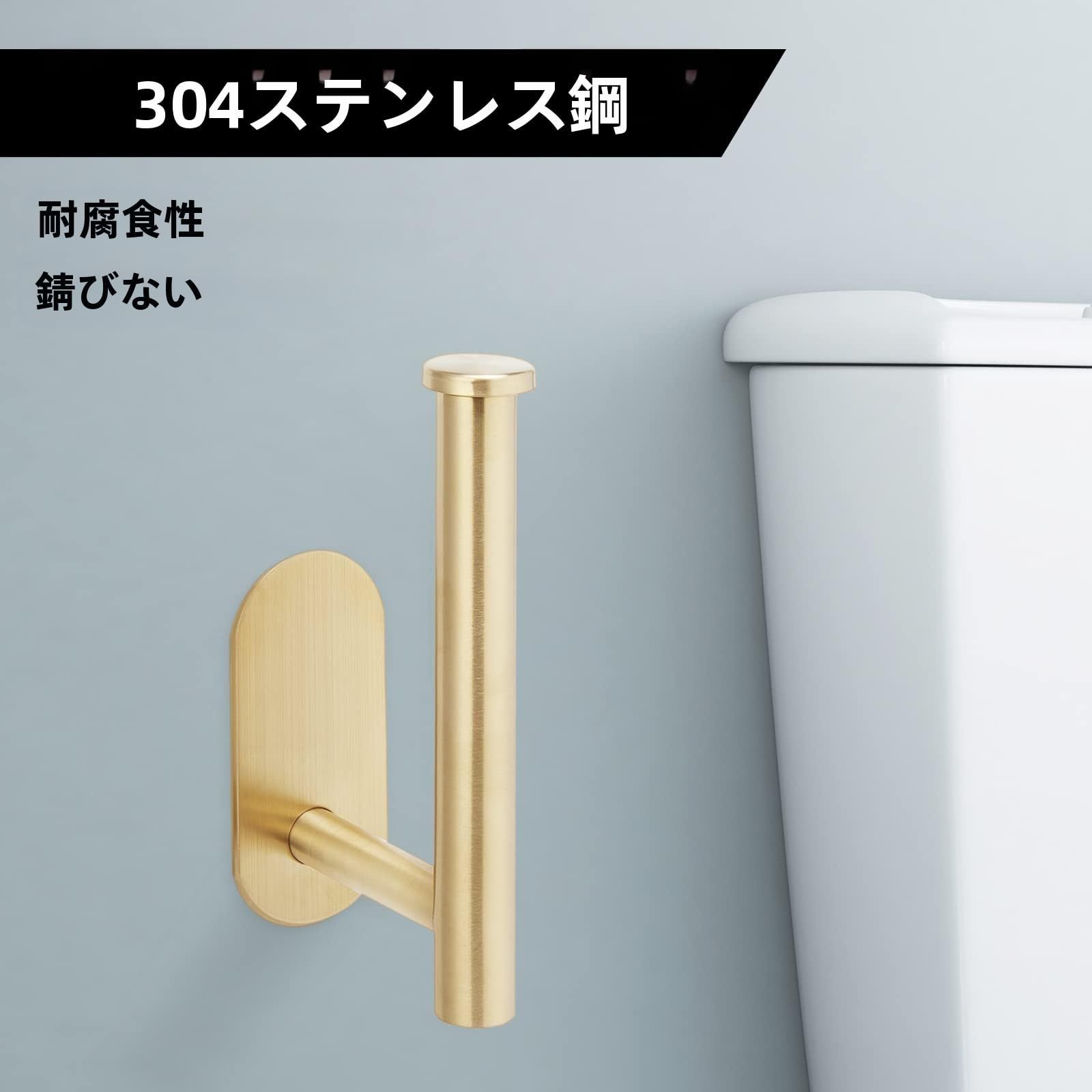 YUET トイレットペーパーホルダー 壁取り付け、3M 粘着式トイレットロールホルダー SUS 304 ステンレススチール トイレットペーパーホルダー バスルーム用 ドリル不要 (ゴールド)