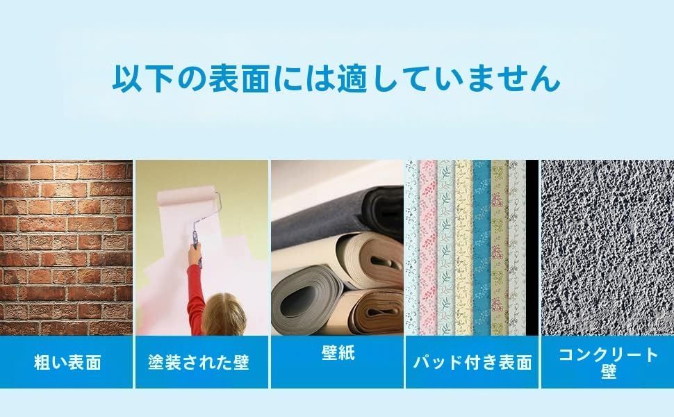 取り付け簡単:ドリルを使わずに、粘着パッドのフィルムをはがし、滑らかな壁面に貼り付け、数秒間押すだけです。