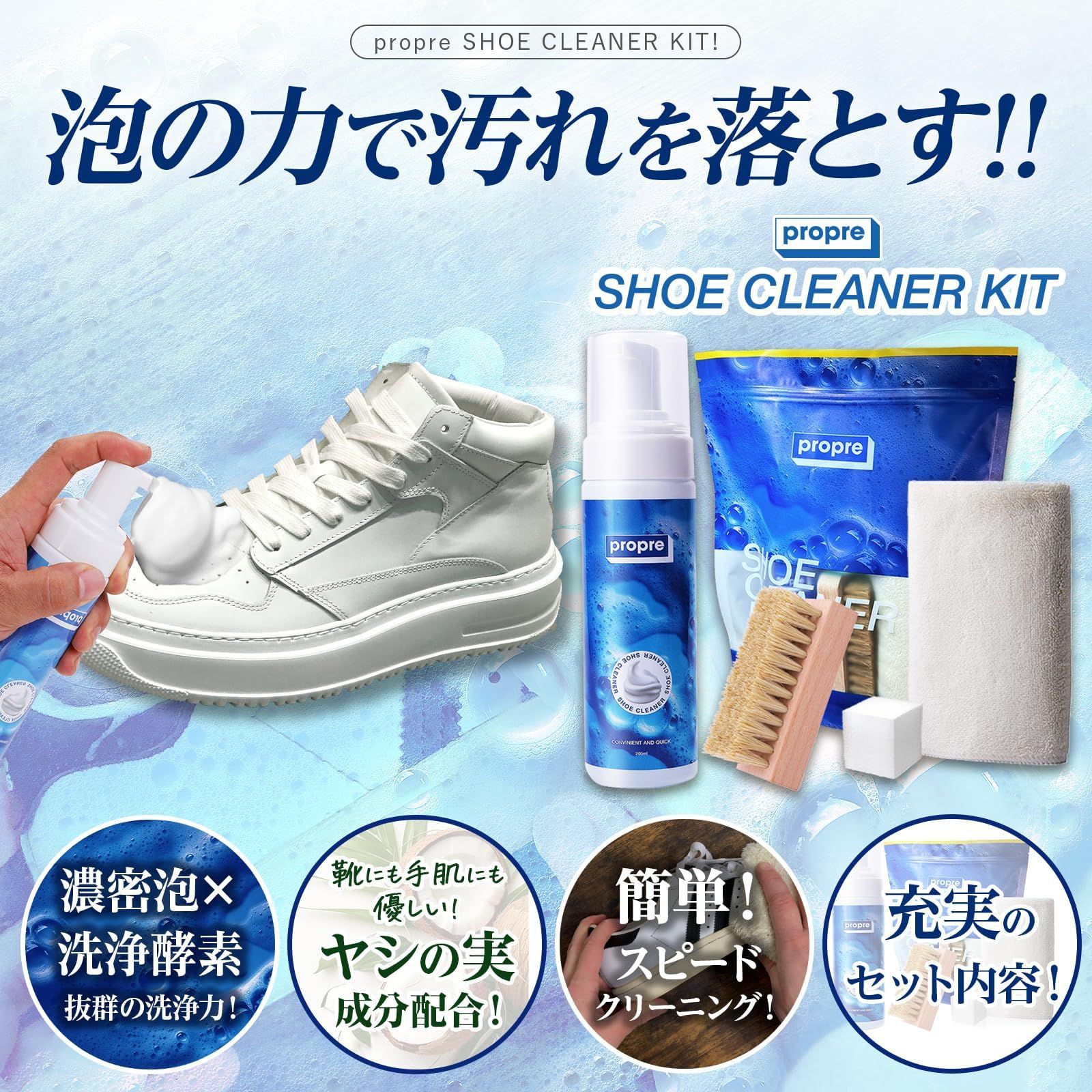 KITは、100%天然毛のブラシ、柔らかいマイクロファイバーのクリーニングクロス、ソール磨き用のメラミンスポンジ、そしてスニーカークリーナーシャンプーの4点セットです。