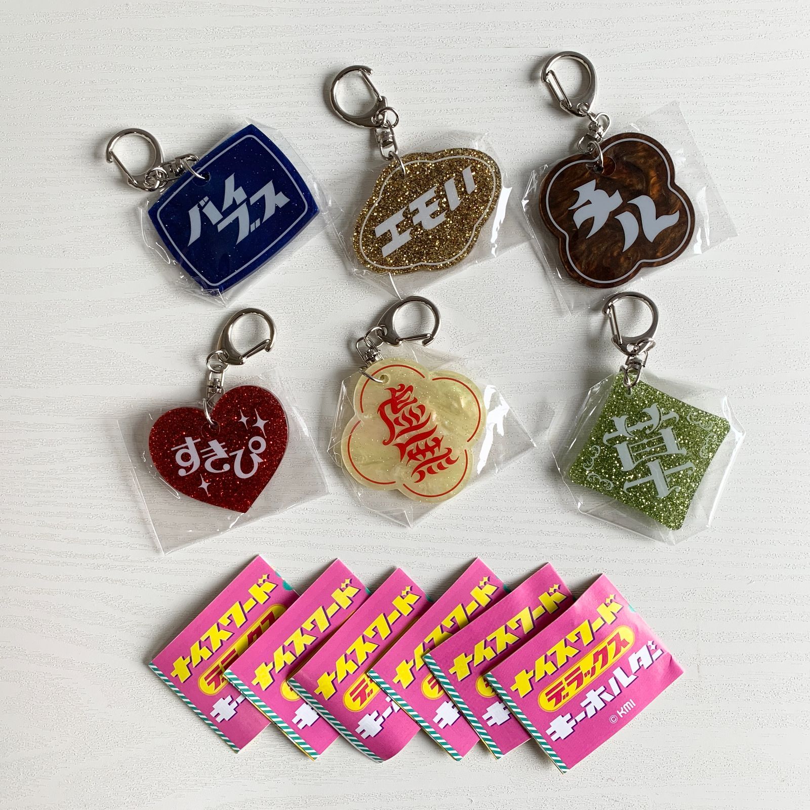 ガチャガチャ ナイスワード デラックスキーホルダー 全6種セット バイブス エモい チル すきぴ 虚無 草 ①