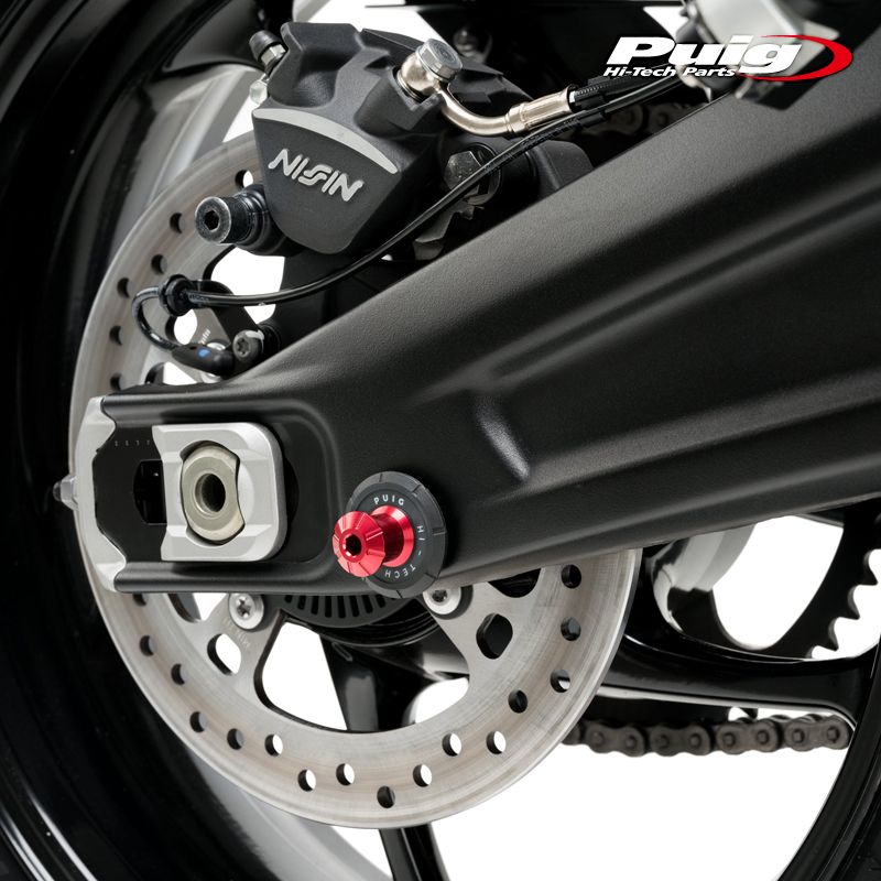 樹脂製カラーが大きめに設定されており、スタンドアップ時にスイングアームを傷から守ってくれます。