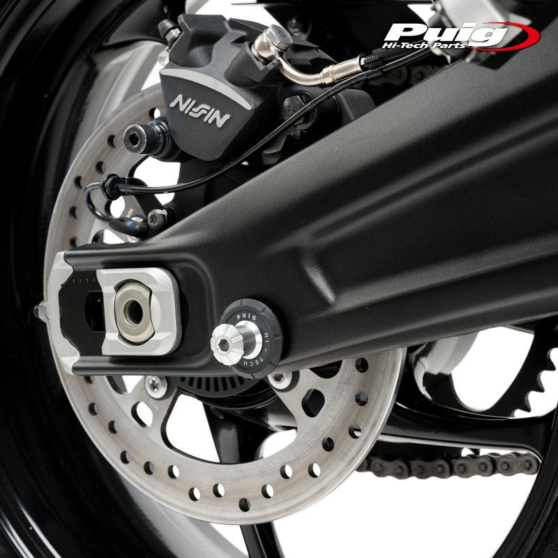 樹脂製カラーが大きめに設定されており、スタンドアップ時にスイングアームを傷から守ってくれます。