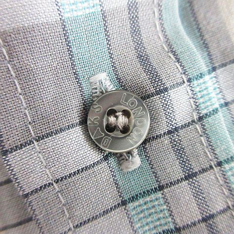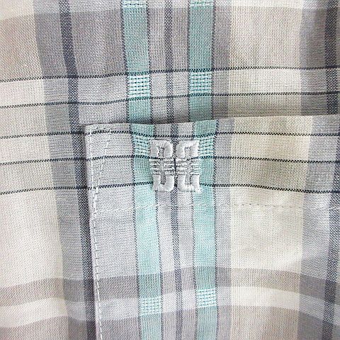【商品名】ダックス DAKS シャツ 半袖 チェック 麻混 ロゴ 胸ポケット L グレー×ライトブルー ※EKM